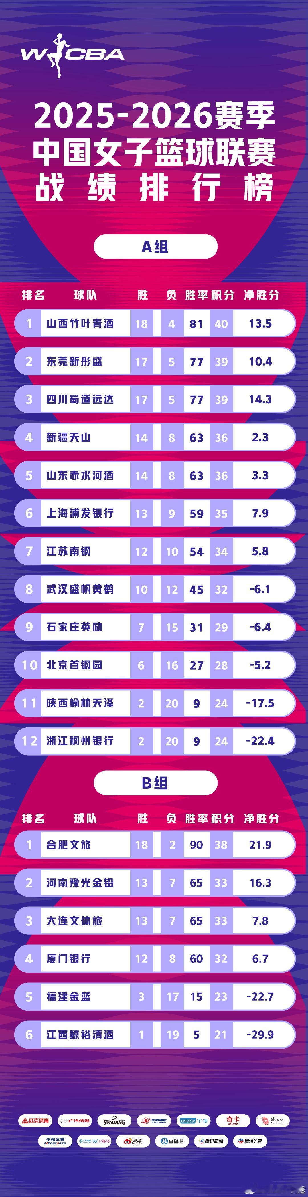 【WCBA常规赛盘点:山西下半程保持不败 卡特连续三个赛季当选得分王】探营WCBA球队 2025-2026赛季WCBA联赛常规赛昨晚落下帷幕,随着新疆女篮和上海女篮的比赛结束,常规赛排名和季后赛对阵也尘埃落定(网页链接)。我爱女篮结合数据对本赛季常规赛进行简要盘点。 联赛开始前,我爱女篮曾发文对常规赛进行前瞻(网页链接),当时就指出新赛季将是“三强争冠”的格局。常规赛战罢,山西、广东、四川形成联赛第一集团,其中,山西女篮更是在换帅后,在常规赛下半程打出11战全胜的佳绩,时隔11年重夺常规赛冠军。联赛前八当中,新疆女篮在一众老将的带领下,收获第四的好成绩颇为不易;武汉盛帆女篮提前3轮锁定八强,表现也可圈可点。 本赛季的球队单场得分纪录归属合肥女篮,她们在联赛第17轮与大连女篮的比赛中得到123分,这也是继上赛季四川女篮打出133分后,联盟又出现单场得分破120分的情况。上海女篮是场均得分最多的球队,她们场均可以得到91分;四川女篮则是场均命中率最高的球员,可以达到48%。 球员方面,钱内迪-卡特连续三个赛季成为联赛得分王,且每个赛季的场均得分都有进步,本赛季更是达到了33.1分,断档式领先排名第二的麦克丹尼尔(23.4分),她5次单场得分超过40分,也是所有球员中最多的。本赛季的球员单场得分纪录归属河北女篮的外援凯拉-戴维斯,她在对阵陕西女篮的比赛中28投18中,独得51分,占全队超一半的得分。 其他单项数据统计上,大连女篮外援阿伦成为本赛季的篮板王,她场均贡献16.6分13.6篮板7.2助攻,是整个联盟全面型球员的突出代表,同时也是本赛季唯一一位多次拿到三双的球员。武桐桐以场均8.7次助攻荣膺助攻王;抢断王归属王丽丽,她场均送出3.3次抢断,河南队外援法格本勒是场均盖帽最多的球员(2.4次),不过她比赛样本较少,只打了7场比赛。