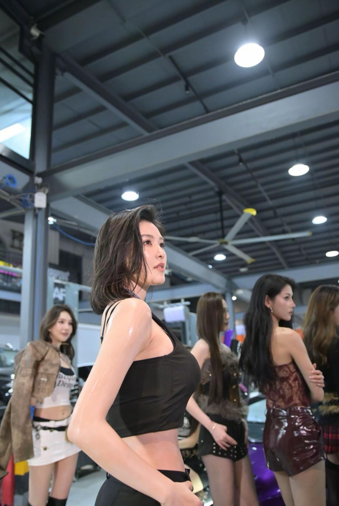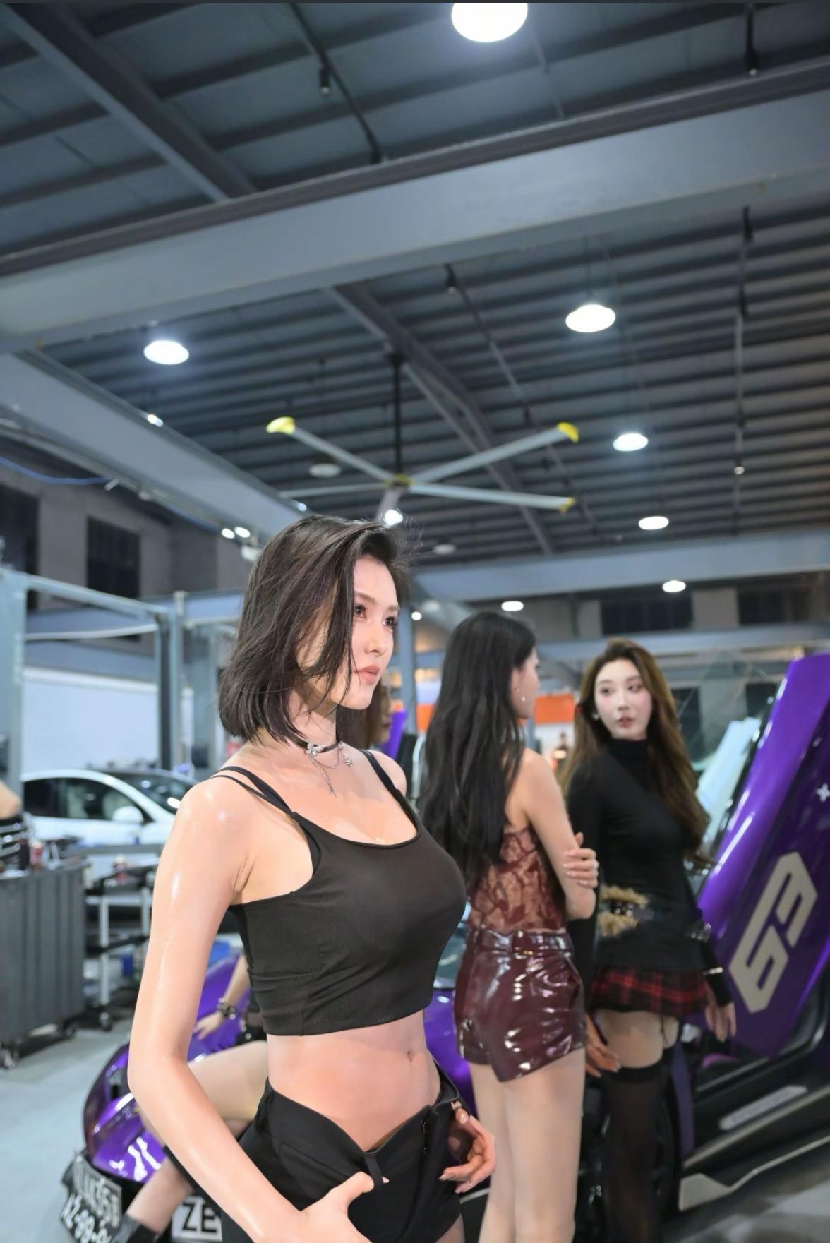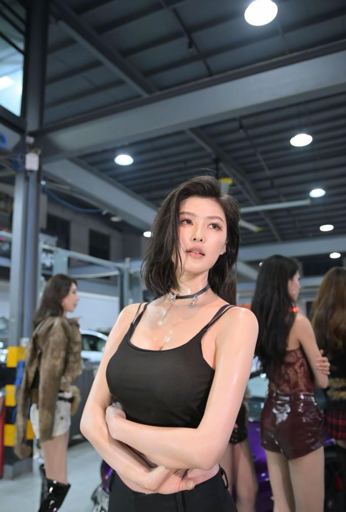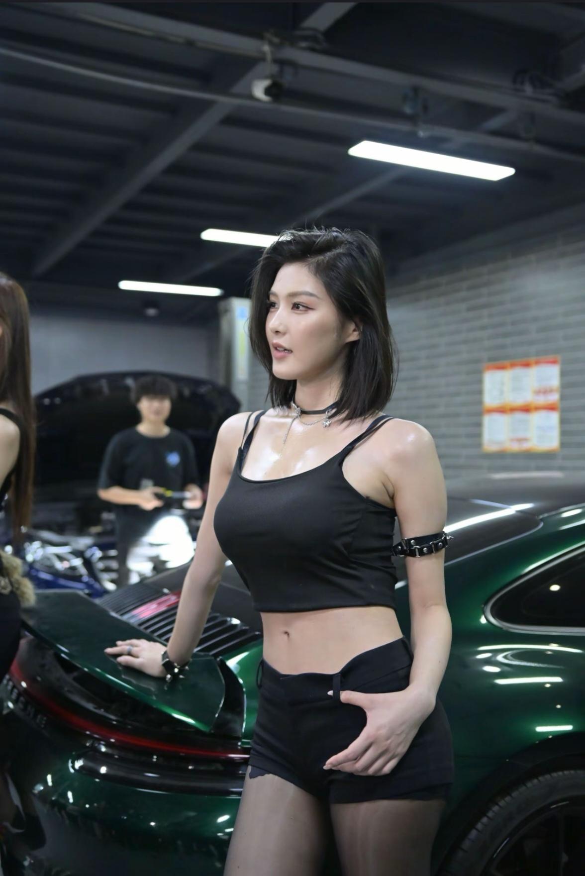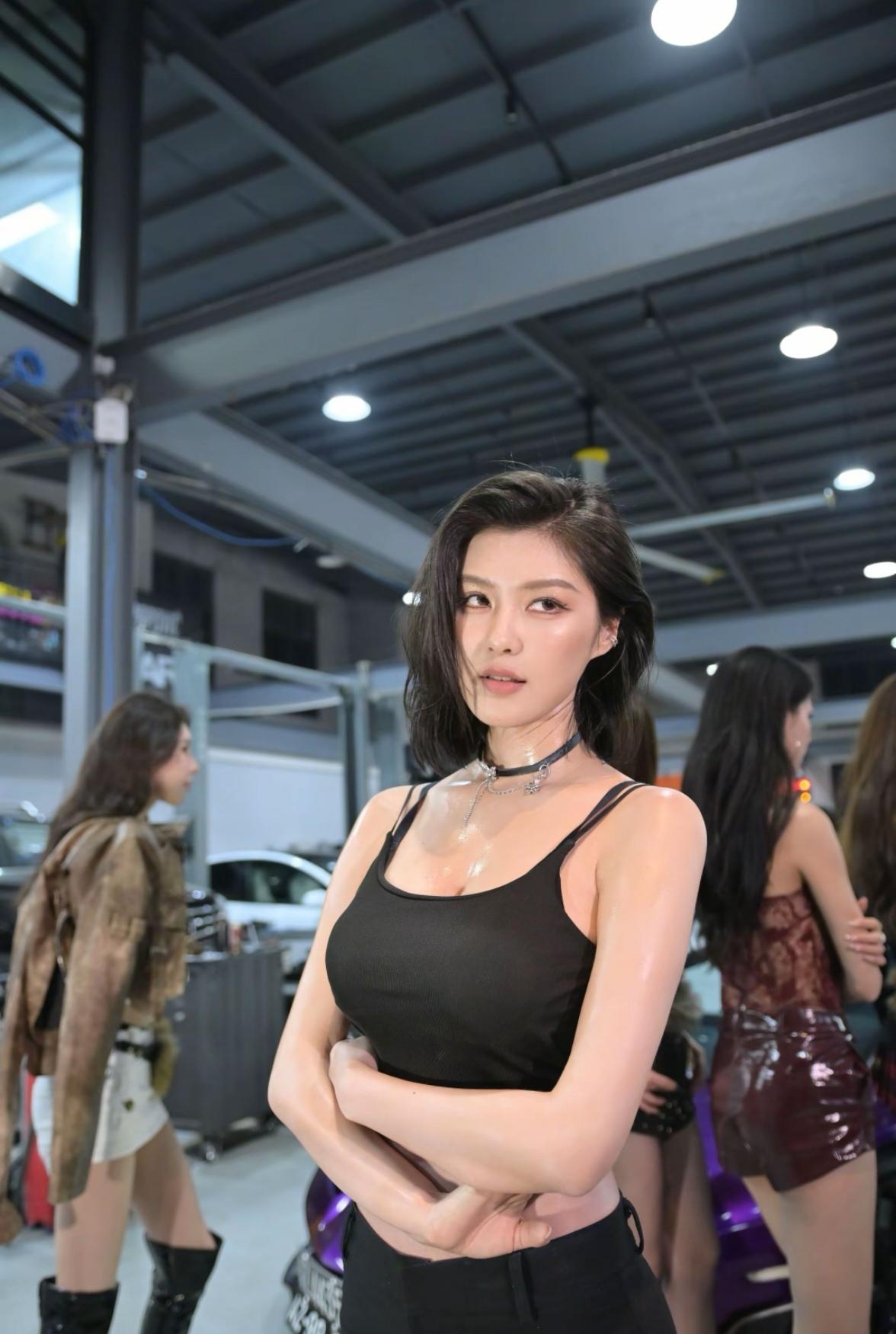 程儿领衔,酷炫车模,机车风穿搭,夜晚停车场,炫酷自拍!