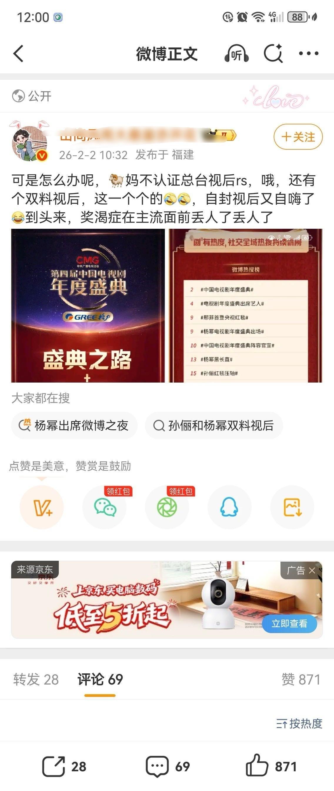 丽丽粉丝🐛又来秀低智商了,央妈压根不会在正式播出之前抢跑奖项情况,去年大年初一正式播出的时候,央视才会认领。