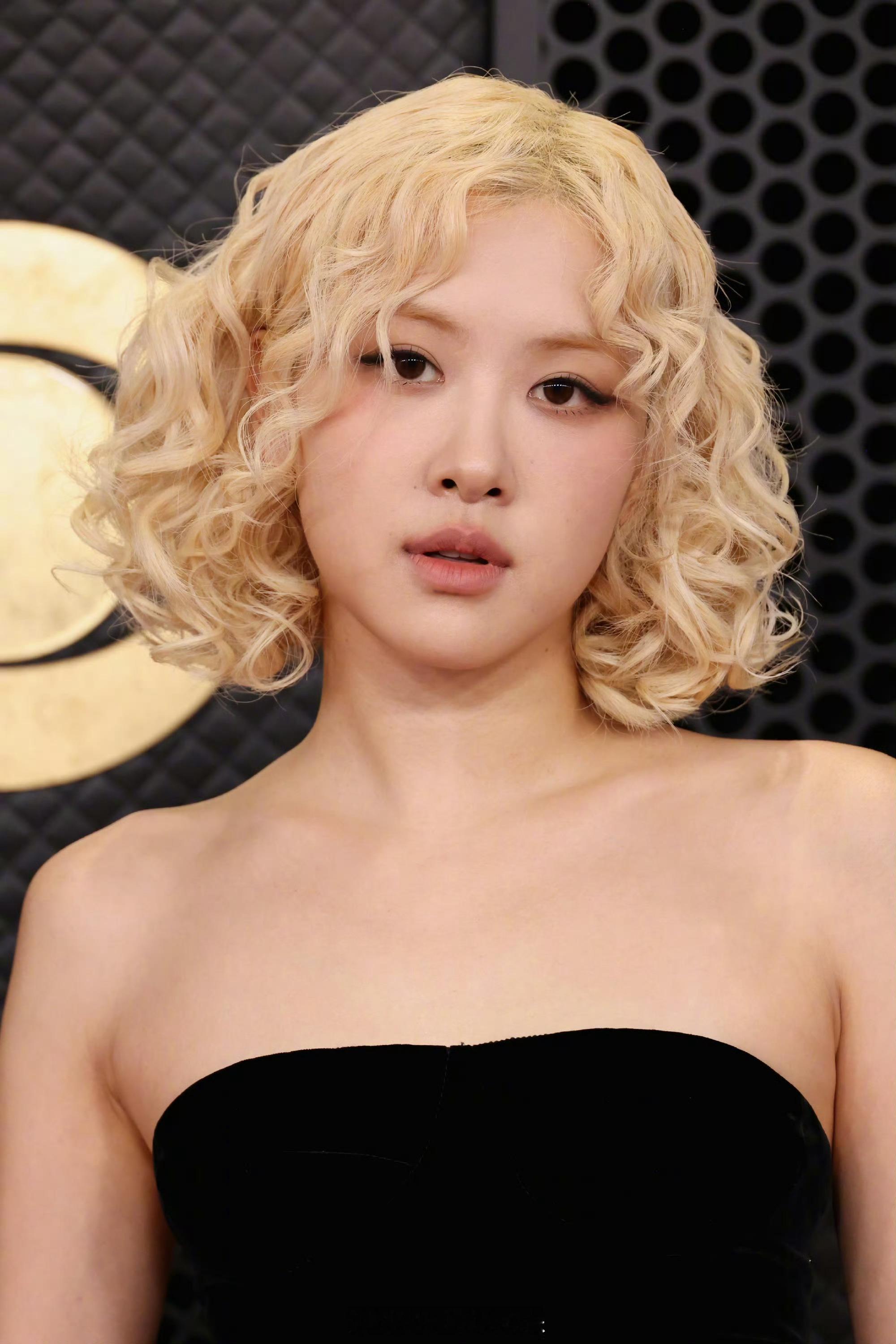 朴彩英格莱美红毯造型,定制黑白撞色抹胸裙,来看看状态朴彩英格莱美造型
