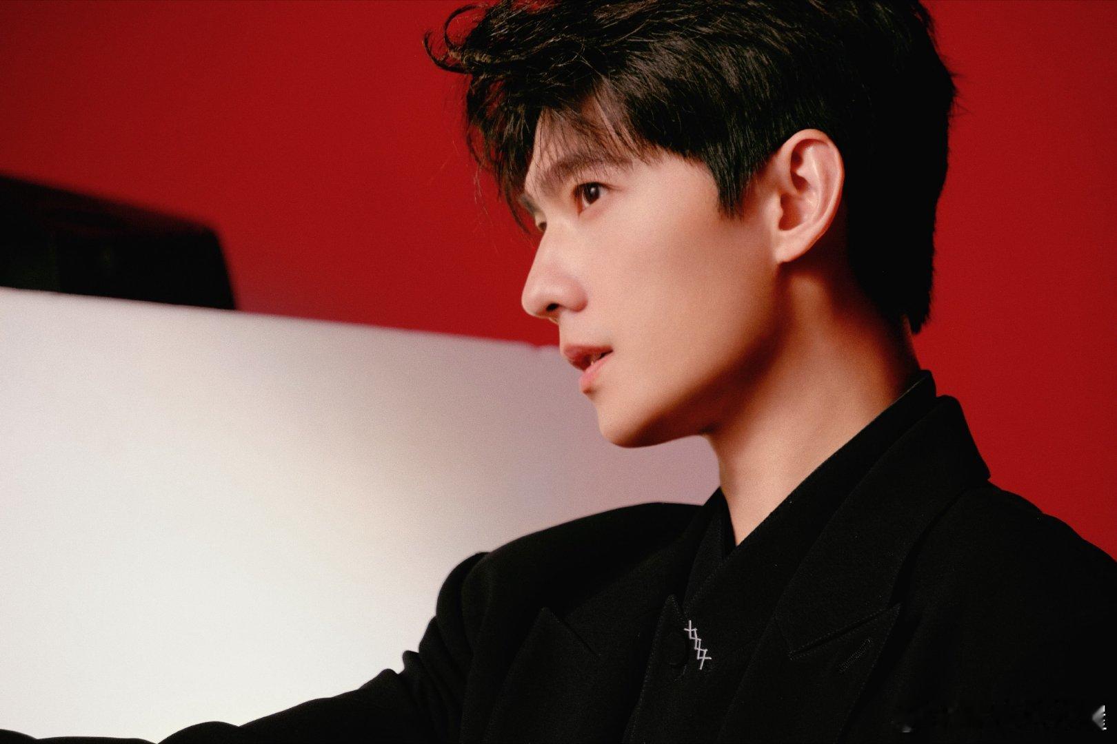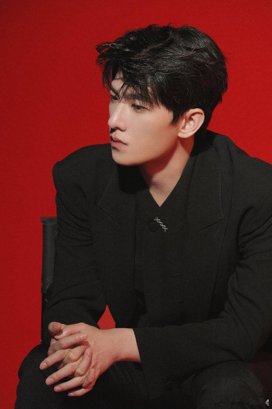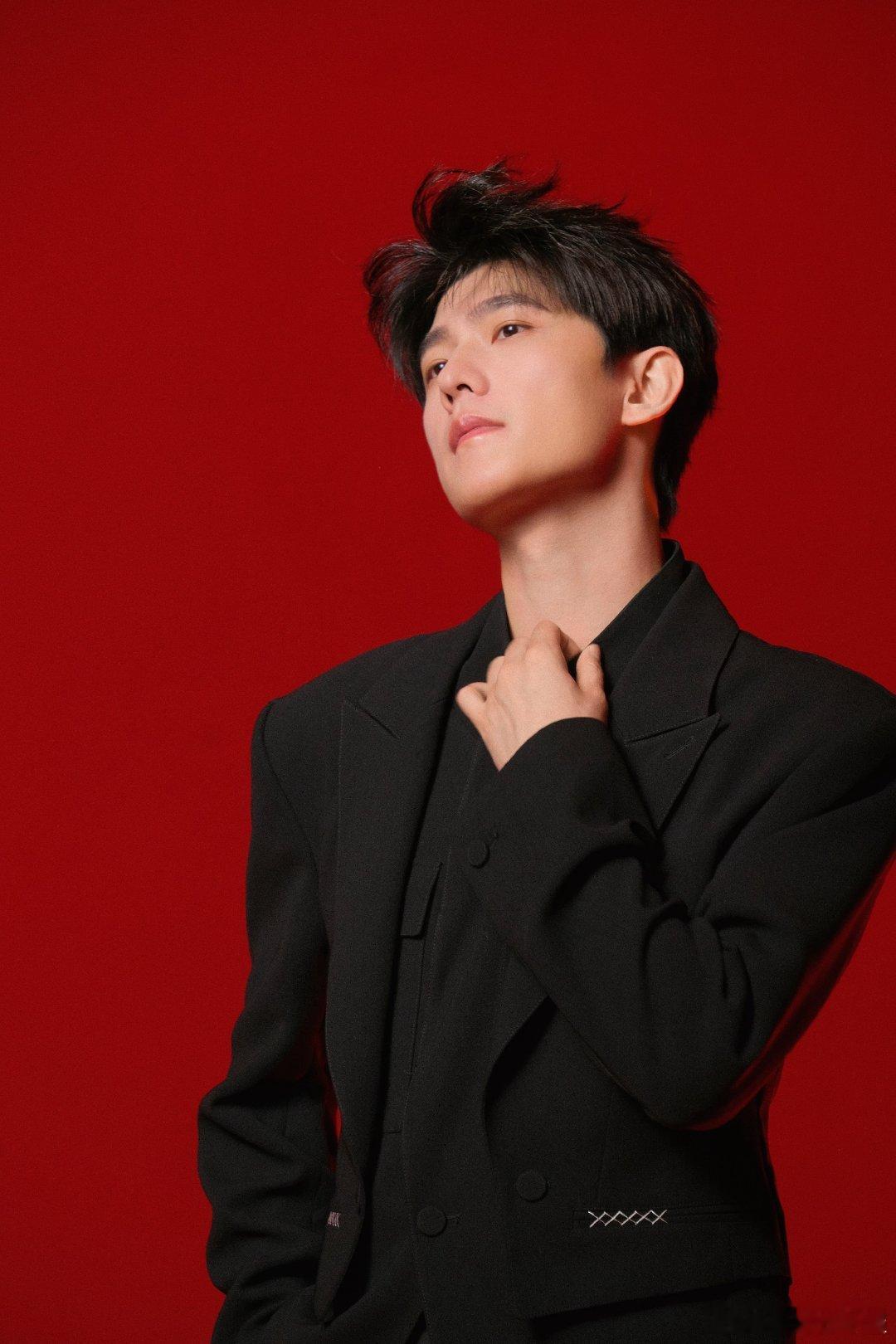 杨洋的脸就是权威二字,allblack黑西装配红底背景太超过了答应我就这样保持高