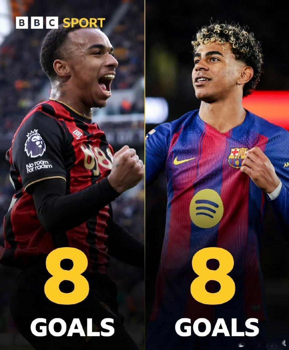亚马尔是巴萨主力,而克鲁皮只是伯恩茅斯的替补前锋,联赛出场744分钟就打进了8球,这效率实在太高了。
