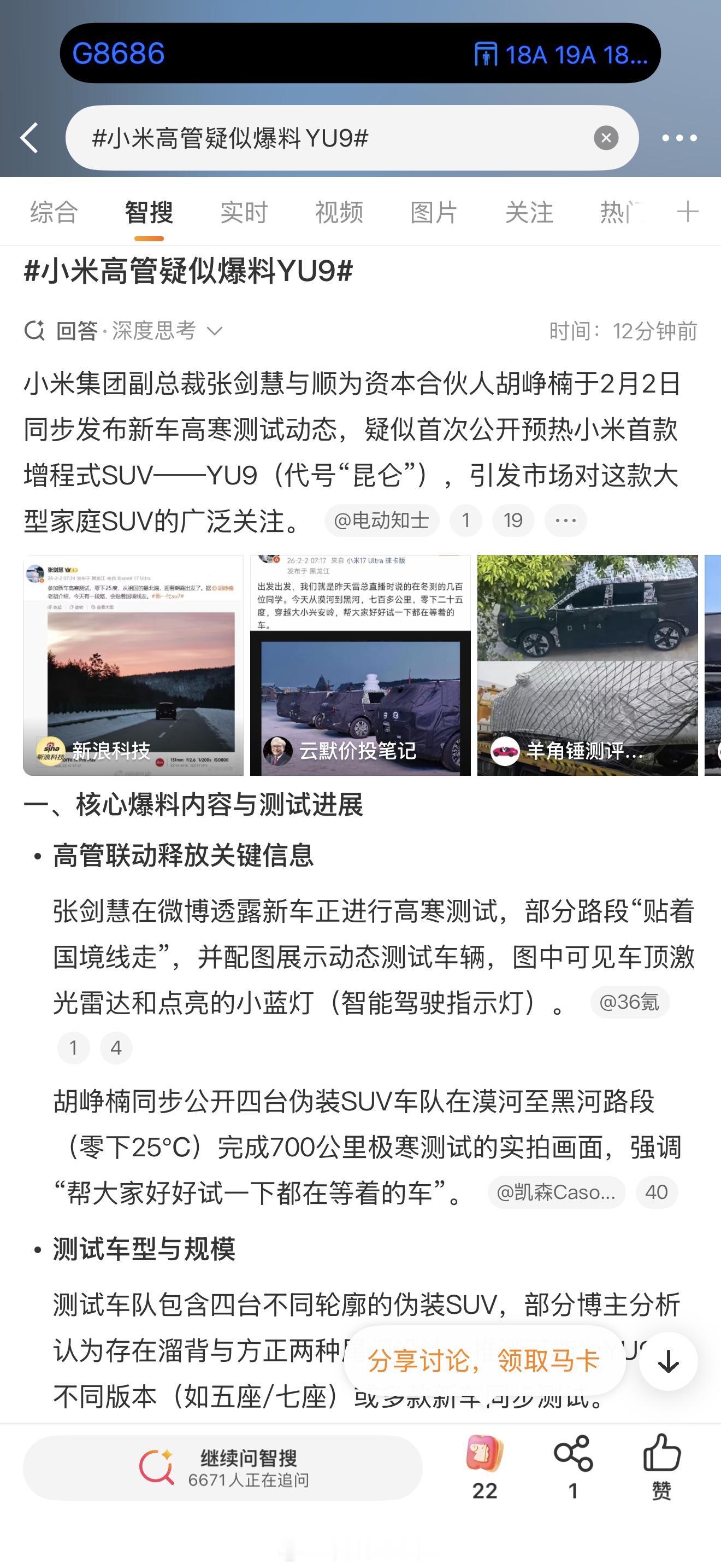 小米高管疑似爆料YU9据说是在零下25度完成了700公里续航测试,主打家庭,YU9应该快了。