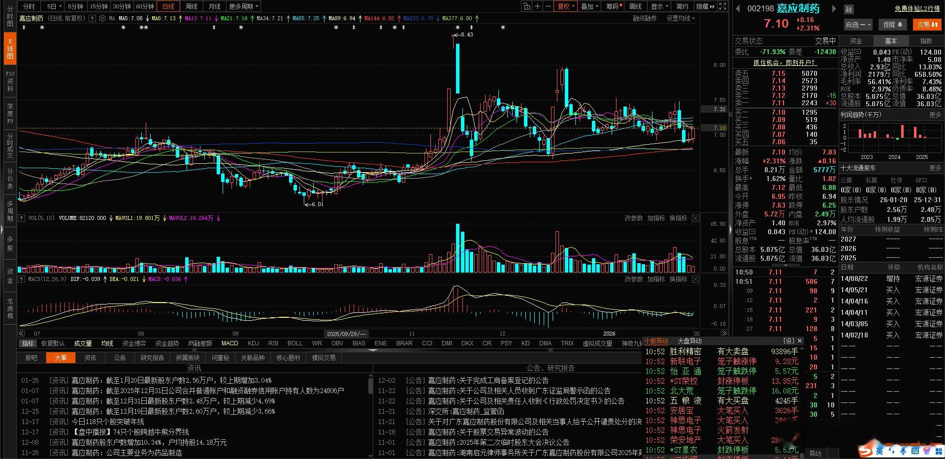 回踩到位了 $嘉应制药 sz002198$ 大家可逢低关注