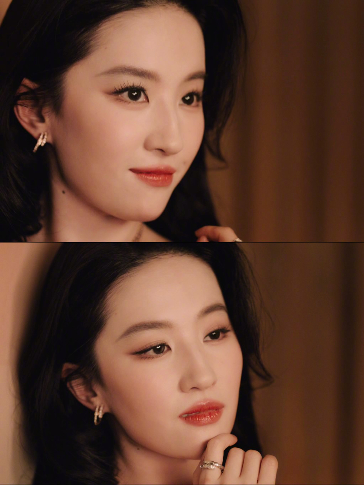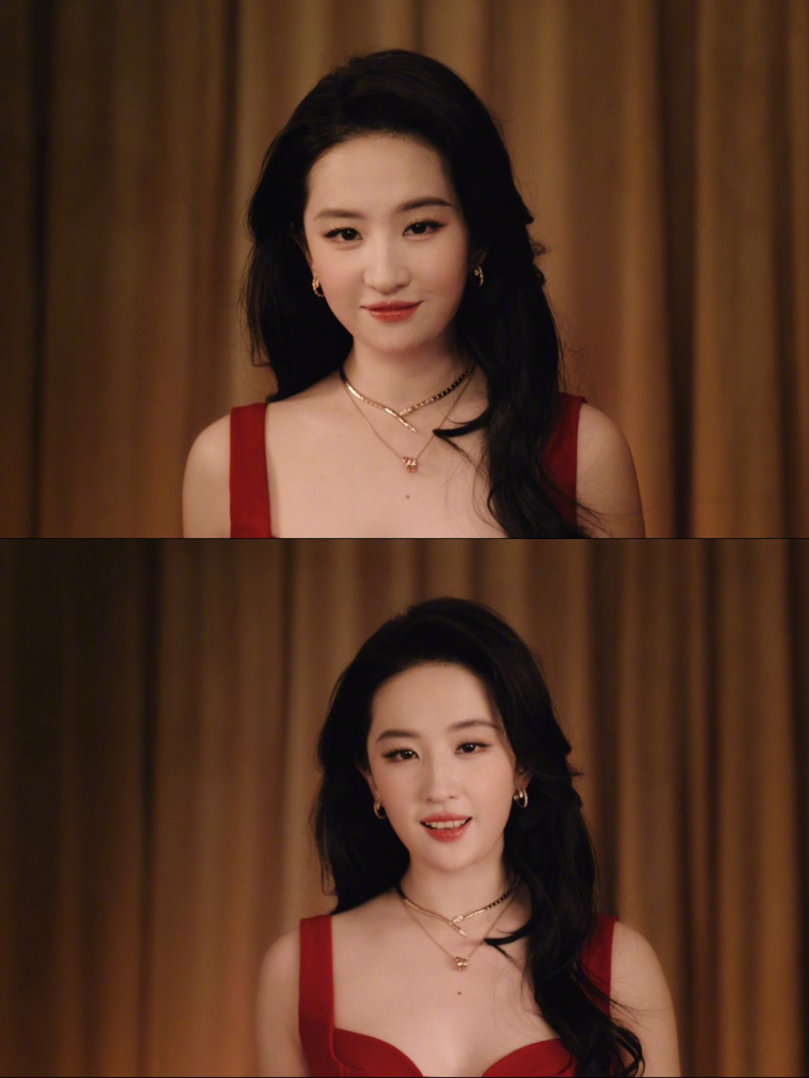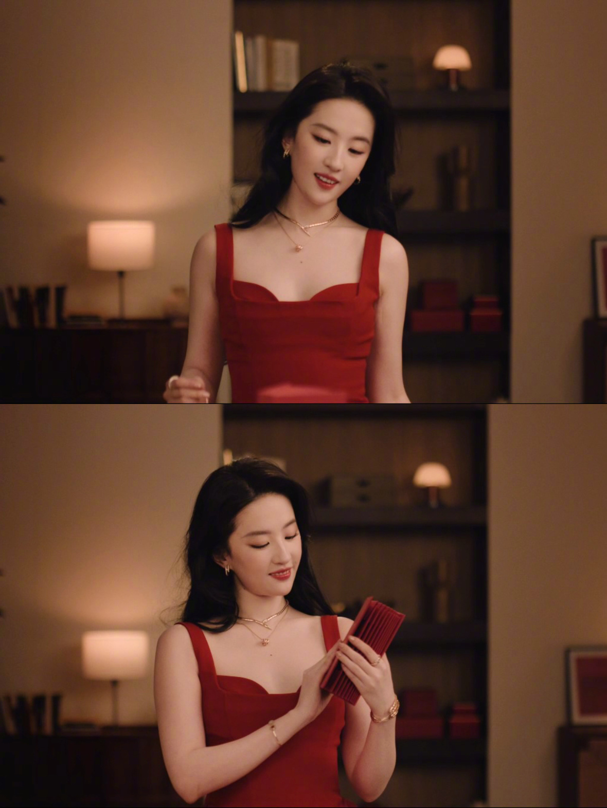 宝格丽刘亦菲 新春夜幕下,刘亦菲身着正红长裙亮相,宝格丽珠宝层层叠搭,红宝石光泽与裙色交相辉映;袖口与配饰中暗藏金蛇造型巧思,静谧气韵中透出节日祥瑞。