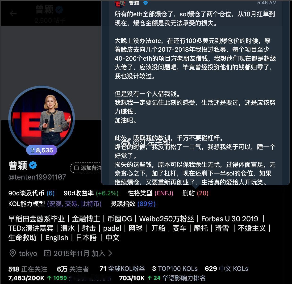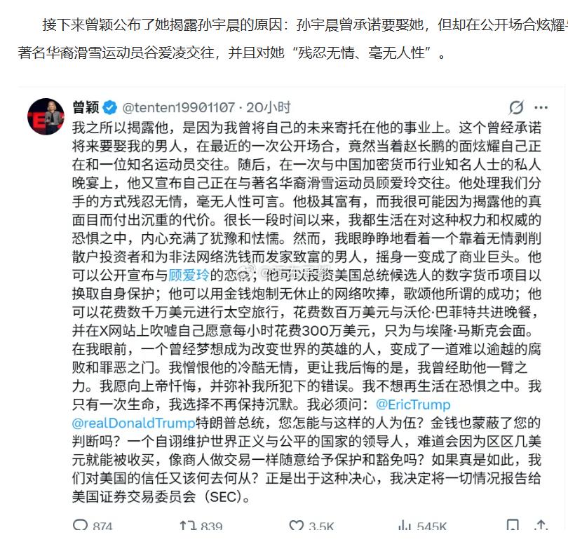 孙宇晨前女友曾颖炒币爆仓,因为孙宇晨在和谷爱凌交往因爱生恨举报孙割。。。。