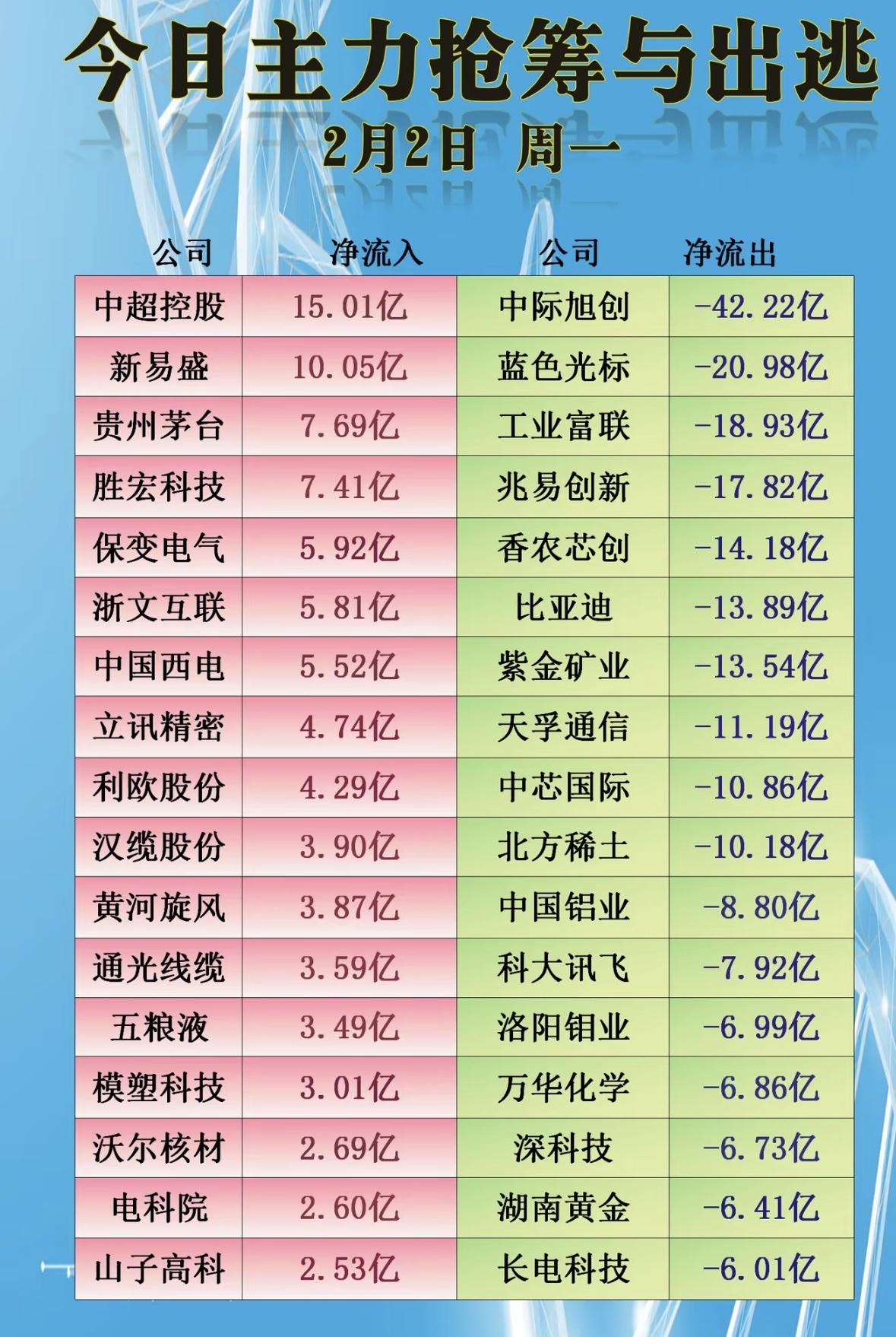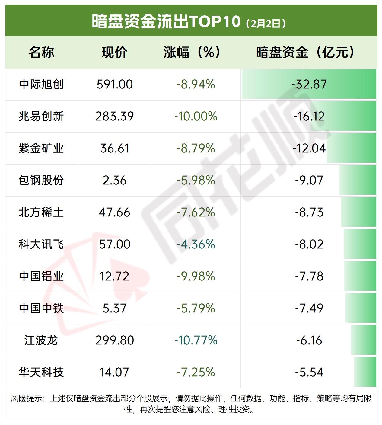 2月2日暗盘资金流出TOP10,小心这些股票! 暗盘资金流入个股活跃,部分标的涨幅亮眼,投资需谨慎理性,勿盲目跟风。