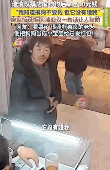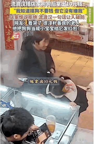 破防了!山西,一流浪汉摸了一下店家的大黄,临走时掏出10块钱现金给店家,店家:“不用,摸狗不收钱的!”但是流浪汉之后一句话让店家红了眼眶。网友:看着看着,眼泪来了! 午后的街头雪花刚刚停下,街角的维修店还亮着白花花的灯,门口那只叫“大黄”的拉布拉多老样子地趴着,尾巴时不时扫一下地面。 一个穿着破棉衣、脚后跟踩着不合脚塑料鞋的大哥,在店门口停下了。店主没抬眼,只当是路人经过,继续刷着手机。但大哥没有走,他盯着大黄看了半天,眼神就像个小孩,眼里有光。 那一刻,好像不是人看到了一只狗,而是一个人看到了一点久违的温暖。 他没有直接往前走,而是犹犹豫豫停顿了几次,像在和自己斗争,也像是怕打扰别人。 他小心地往前挪了一步,身体没动,先是双手从兜里缓缓抽出来,裂开的指节、粗糙翻白的皮肤,轻轻地对着大黄说:“我能摸你吗?” 大黄听不懂太复杂的话,但能读懂气味和人心。 它没叫,也没退,反而直起身子,主动把头凑了过去,尾巴一摇一摇地甩得欢快。 那一瞬,大哥的嘴角动了动,干裂的嘴唇咧出一个小小的笑。他的手有些抖,但还是稳稳地落在了狗头上。 没有嫌弃,没有驱赶,没有皱眉。 就这一刻,他不是流浪汉,像是个久别重逢的朋友。不远处的店主其实都看在眼里,只是没出声,默默地让这一切自然发生。 摸完狗,大哥要走了。 但他没有什么都不留,而是从棉袄里面摸出了张皱巴巴的十元钱。 能看出来,那张钱他攥了很久,脏但干净,旧却整,像是一份被珍藏的东西。他把钱递到柜台前,说了句:“我要给它十块钱,我也看到了,也摸到了。” 店主本能地说不用摸狗不给钱,真不是服务,何况是个陌生人。 可大哥眼眶微红,眼神却特别坚定。他把钱往柜台上一摆,笑着说:“我知道不收钱,但是,它没嫌我。” 这一句,说得太轻,却重得像一块石头,猛地压到人心底最柔软的地方。 不是狗值十块钱,也不是这十块钱有多大价值,而是他不想把这份温暖当成“白捡的”。 他要用钱去证明,自己配得上这份接纳。 很多人可能不理解,一个在街头流浪的人,何必还讲究这些?但其实这才是最打动人的地方。 更让人动容的是,事后店主并没有把这张钱收进抽屉,而是去便利店换了几根火腿肠,喂给了大黄,也为这个大哥预留着。 他看出来,大哥很饿,走路也有些脚软。他盛了一碗热菜热饭端过去,大哥捧着吃得小心翼翼,每吃一口都像是怕惊动谁似的。 吃完饭,店主把他一送,还找到救助站的电话,又联系了社区。 这一连串的举动,看起来像义务,其实只是一个小小触动下的大风吹。那十块钱,不光换来了狗的食物,也让人心“松”了一下。人和人之间隔着的那点防备,也因为一句“它没嫌我”,融化了不少。 过了几天,他侄子的电话打到了店里,说人已经被接回家了。视频也在网上传了开来,那张皱巴巴的十元纸币,被无数人称为“最干净的十块钱”,也确实是。 这件事打动我的,不是流浪汉掏钱本身,而是他“非得掏钱”的那种执拗劲儿。 他不是为了表示感谢而给钱,而是为了“证明自己不是白要”。 他早就习惯了被路人绕过,店员撵走,甚至连公交司机都不愿多看一眼。但这只狗没有,它纯粹地走了过来,就冲这一点,他觉得值得“付出点什么”。 有时候,我们以为“平等”只是社会架构词汇,其实对某些人来说,平等就是在寒冬里摸个狗还能被接受的那几分钟。他不是非要跟狗有多深的情感连接,而是从这只狗身上,找到了些早被生活抛弃掉的“正常感”。 人活在社会里,最难的不是贫穷,不是饥饿,而是毫无价值感地被透明。 没有人会真正了解他这些年到底经历了什么,但当他说出“它没嫌我”的时候,他真的只是想当一个“普通人”——一个可以付出、可以交换、可以站着被对待的人。 整个故事没有轰轰烈烈,没有悬疑反转,甚至画面都极其简单,一碗饭,一只狗,一张皱钱。但这种简洁,才最显真情。 如果要说从这个故事里学到了什么,那就是——人这辈子,不需要过得多亮堂、多风光,但一定要有一份不被拿走的体面。生活可以很难,但只要这份“我值不值”的信念还在,再低谷的人生也会慢慢爬起来。 我相信,流浪的大哥不是第一次给人鞠躬,不是第一次低声下气地请求帮助,但那天的他,是第一次,抬着头,郑重其事地完成了一次平等的“交易”。 家不是一个落脚的地方,而是有人愿意听你说“它没嫌我”之后,留下来陪你喝碗热汤的地方。 屏幕前的你,如果阅完这则故事,心里也涌起一点点说不清的酸,那就点个“在看”,或留下一句你想说的话吧。我们一辈子会遇到无数人,愿你也能成为那个“不嫌弃”的人。