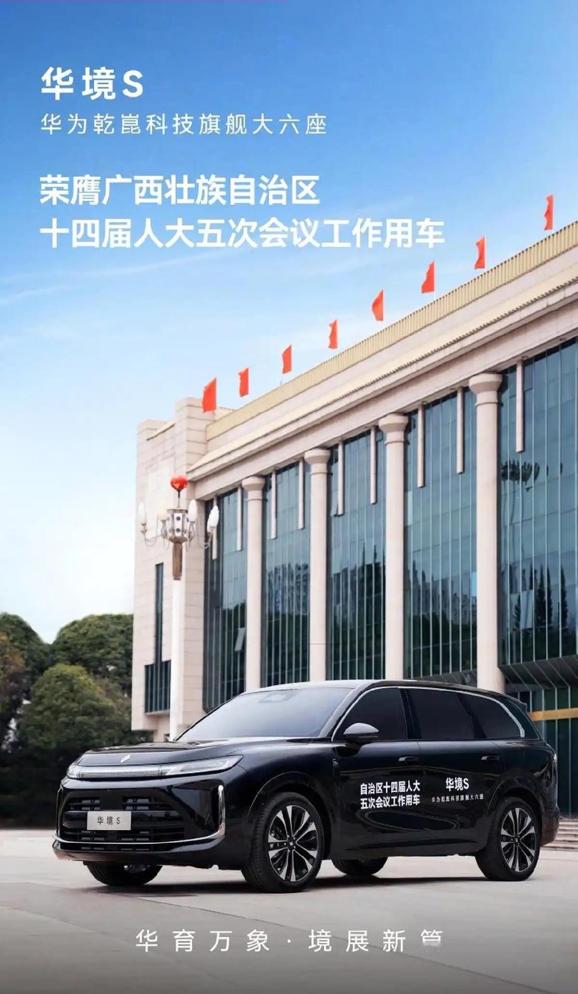 华为乾崑科技旗舰大六座华境S荣膺自治区人大会议用车🚗 2026年2月2日,广西壮族自治区第十四届人民代表大会第五次会议在南宁隆重召开。 华为乾崑科技旗舰大六座——华境S,荣膺此次自治区人大会议工作用车,在会议期间为与会代表及工作人员提供智能、舒适、安全的一体化出行服务与保障。 这已是上汽通用五菱旗下车型连续两年荣膺自治区人大会议工作用车,以硬核产品实力持续护航广西政务出行。