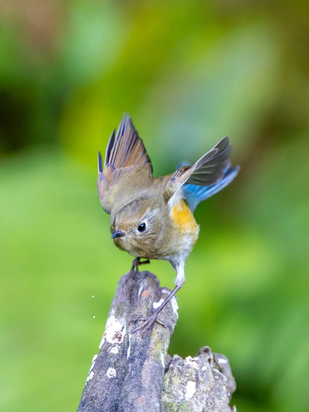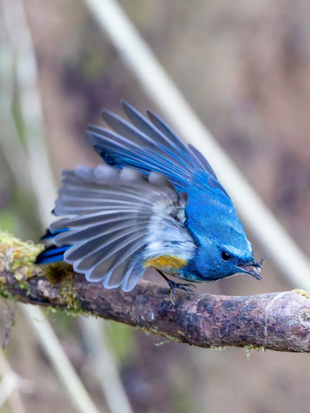 在滇西看到的这俩蓝眉林鸲,这身宝蓝色羽毛,翅膀下面泛着橙色光晕,尾羽轻颤时仿佛有微光流动,美得很。