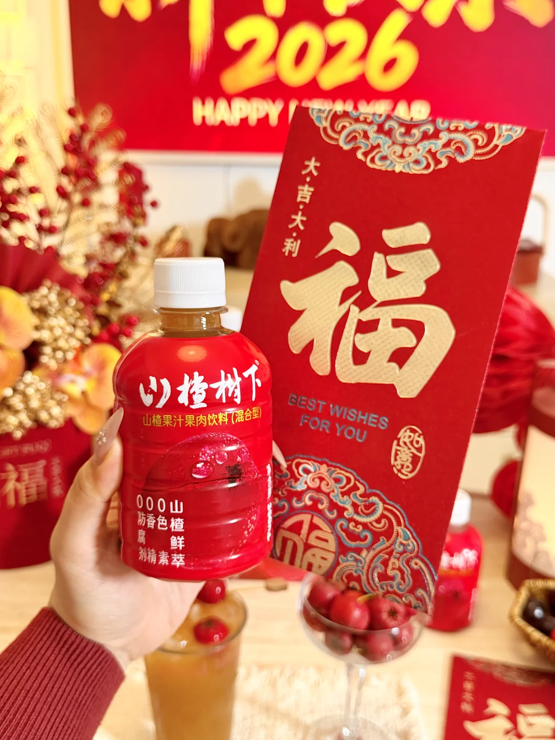 🧨过年家里朋友聚会或者聚餐,必须人手一箱山楂树下山楂果汁,大鱼大肉后来上一瓶真的解辣🔥又解腻!嘎嘎好喝又喜庆!!!