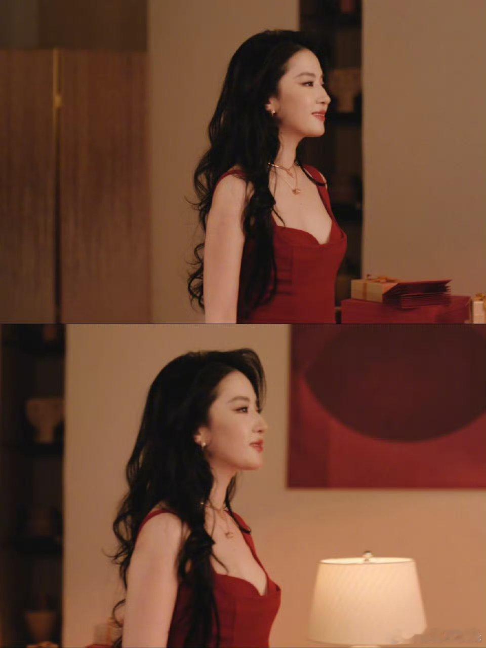 刘亦菲宝格丽红裙物料风情万种的美人