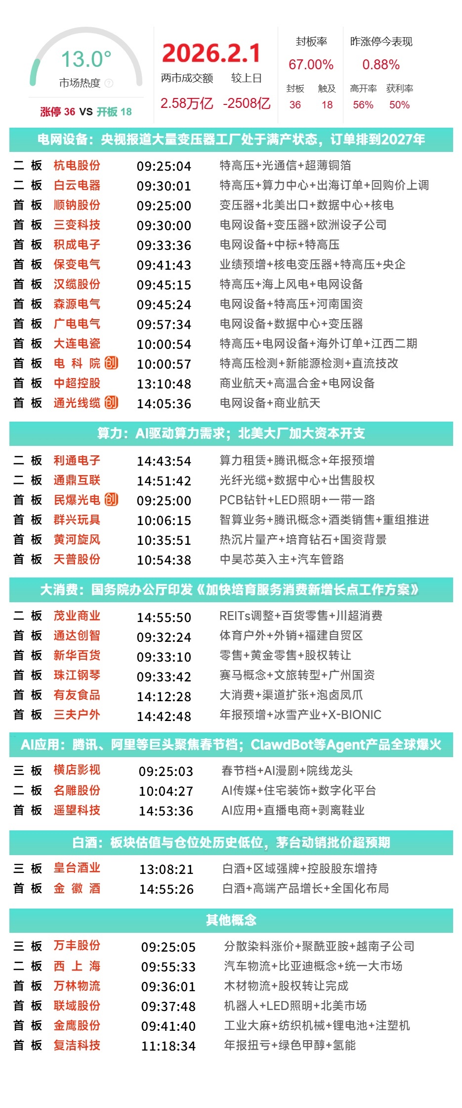 2月2日A股涨停个股与板块分析
