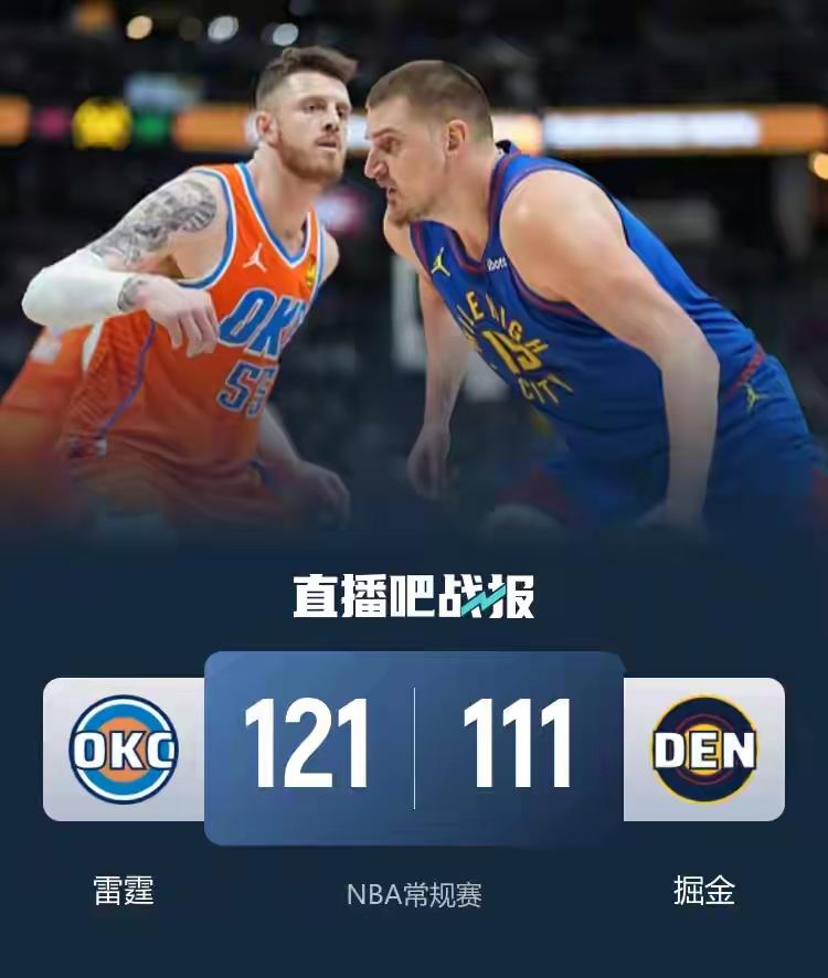 西部榜首之争再现一边倒?北京时间2月2日,雷霆做客丹佛,硬生生用一场胜利给“苦主”掘金上了一课。最终比分定格在121-111,雷霆不仅巩固了自己西部第一的宝座,还让掘金吞下了一场苦涩的失利。 这场比赛最亮眼的星,既不是当家球星亚历山大,也不是约基奇,而是雷霆的小将华莱士。这小伙子简直是“开了挂”,全场飙中7记三分球,一举刷新了个人职业生涯单场三分纪录。每当掘金试图起势追分,华莱士总能用冷血的三分球给予回应,全场轰下27分6篮板,成为了雷霆外线最锋利的武器。 老大亚历山大依旧是那个“稳如泰山”的存在,全场砍下34分外加13次助攻的豪华两双,不仅自己能得分,还能完美盘活全队。反观掘金这边,核心穆雷的状态实在让人“大跌眼镜”,全场16投仅4中,手感冰凉。尽管沃特森拼尽全力砍下29分,约基奇也交出了16分7板8助的准三双数据,但在雷霆多点开花的攻势面前,掘金还是显得独木难支。 此役过后,雷霆战绩来到39胜11负,继续领跑西部。这支青年军展现出的成熟度和爆发力,正在告诉全联盟:他们不仅是常规赛的霸主,更是冠军的有力争夺者。