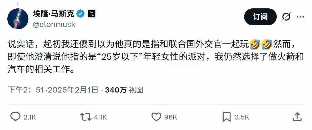 马斯克的狡辩来了,他说他在火辣妹子和火箭车子之间选择了后者。 你信不信?反正我是信了。 毕竟我们确实看到火箭🚀一次又一次地射了。 毕竟我们看到他的车子也在到处跑。 毕竟他有不知道多少的儿子女儿。 他只是对叶子感兴趣。[偷笑] 点右上角关注我,我们一起去看这个魔幻的世界