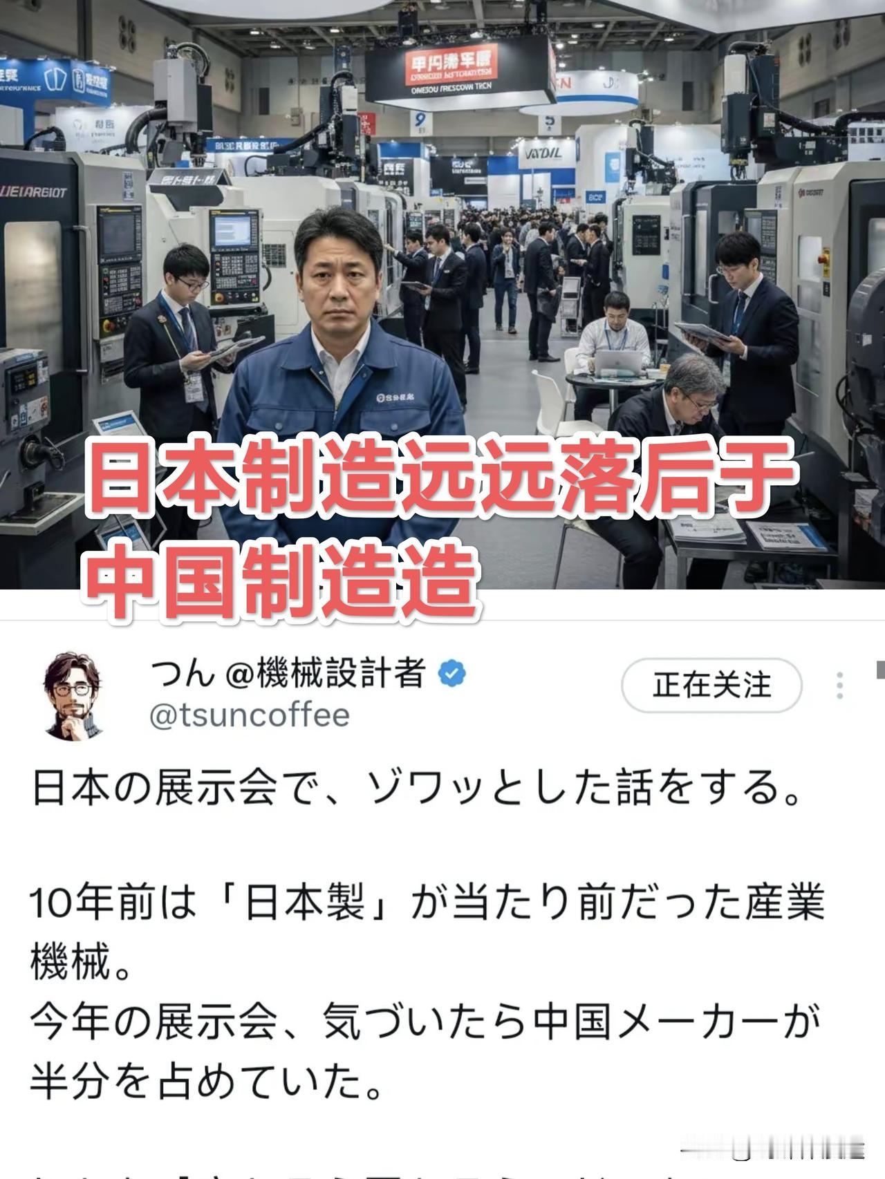 一个日本机械设计工程师参加日本展会,发出了惊叹之声:满眼尽是中国制造! 曾经一眼望去尽是“日本制造”“日本品质”的盛景 已全然不见了,那都是 10 年前的事情。 10 年后的今天 “中国品牌 ”“中国品质”“中国速度“满眼尽是中国字样! 如今中国产品的从研发速度 生产效率与品质 物料采购 品质控制 四通八达的物流 尽是一条龙有生产流程,中国已经有了自己的工业制造控制体系与流程,而中国强大的供应链完全呈“放射线”的采集 采购 送样 比样 量产应有尽有 .这就是中国速度!强大的供应链就形成一个品牌或多个品牌的团队协作,这样的规格也就人数达几千 或几万人的供应链团队,有天时 地利 人和的优势,造就了中国工业制造能力的强大! 这位日本工程师也表示:中国生产制造 是先一版投入 边投入边优化 接着投入第二版本生产 而后再优化 再投入第三版 第四版 也许在半年或一年之内一个成功的产品就打造完了。 而日本的制造太过于“品质”,为了品质投入巨量时间而效率完成没有,研发过程没完成,后端的生产团队 品质团队 采购团队 及供应商团队全部停下脚步等待,也许足足等了一年才研发完成第一版本,而后端的团附才开始起步生产,当有质是问题之时,又停下生产 投入研发,后端又停滞状态。周而复始这样的生产过程,也许中国都到了 N 个版本了,但日是本才刚开始起步!这就 日本与中国的工业制造差距。 所以这位日本工程师发出惊叹的思考: 在这个行业摸爬滚打三十年,我比谁都清楚——日本靠‘品质’赢了大半辈子。可品质这东西,只要给时间,终究会被赶上。日本花一年追求完美,人家已经迭代三轮。 中国靠的是‘速度’。 哪怕第一版翻车,三个月后改良机就上线。 那日本该怎么办? 答案只有一个:把‘允许失败的速度’找回来。从‘追求完美却动弹不得’的组织,变成‘先跑、再改、继续跑’的组织。日本工程师的技术并不差! 不过这位日本工程师还有一点没有想到,中国地大物博 人才济济 资源丰富,民族智慧与才智。这就是中国所说的 天时 地利 人和 !