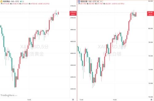 现货金银现V型反弹 2月2日消息,当前现货黄金、白银跌幅均收窄至4%以内,目前分别位于4700美元/盎司和81美元/盎司上方。此前,现货黄金一度跌幅超10%,逼近4400美元/盎司;现货白银一度跌幅超16%,跌至71美元/盎司一线。黄金行情价格 [震惊]