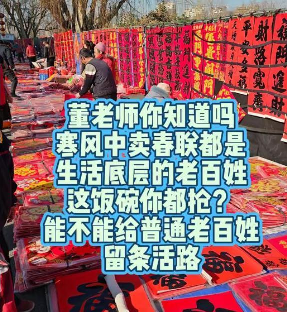 就离谱!董宇辉卖个春联也能被黑? 有人说他抢摊贩生意,我就想问:淘宝在卖春联,没人骂,京东在卖春联,没人骂,就连隔壁直播间9块9包邮的,也没人骂。怎么到了董宇辉这里,就成了“十恶不赦”? 人家卖的是文创礼盒春联,客单价和消费群体,跟街头摆摊的大爷大妈根本不重叠! 就因为他是顶流,骂他有流量,因为他是“读书人”,所以他就该有求必应,就该不食人间烟火? 真别拿底层当幌子,这锅,底层不背!