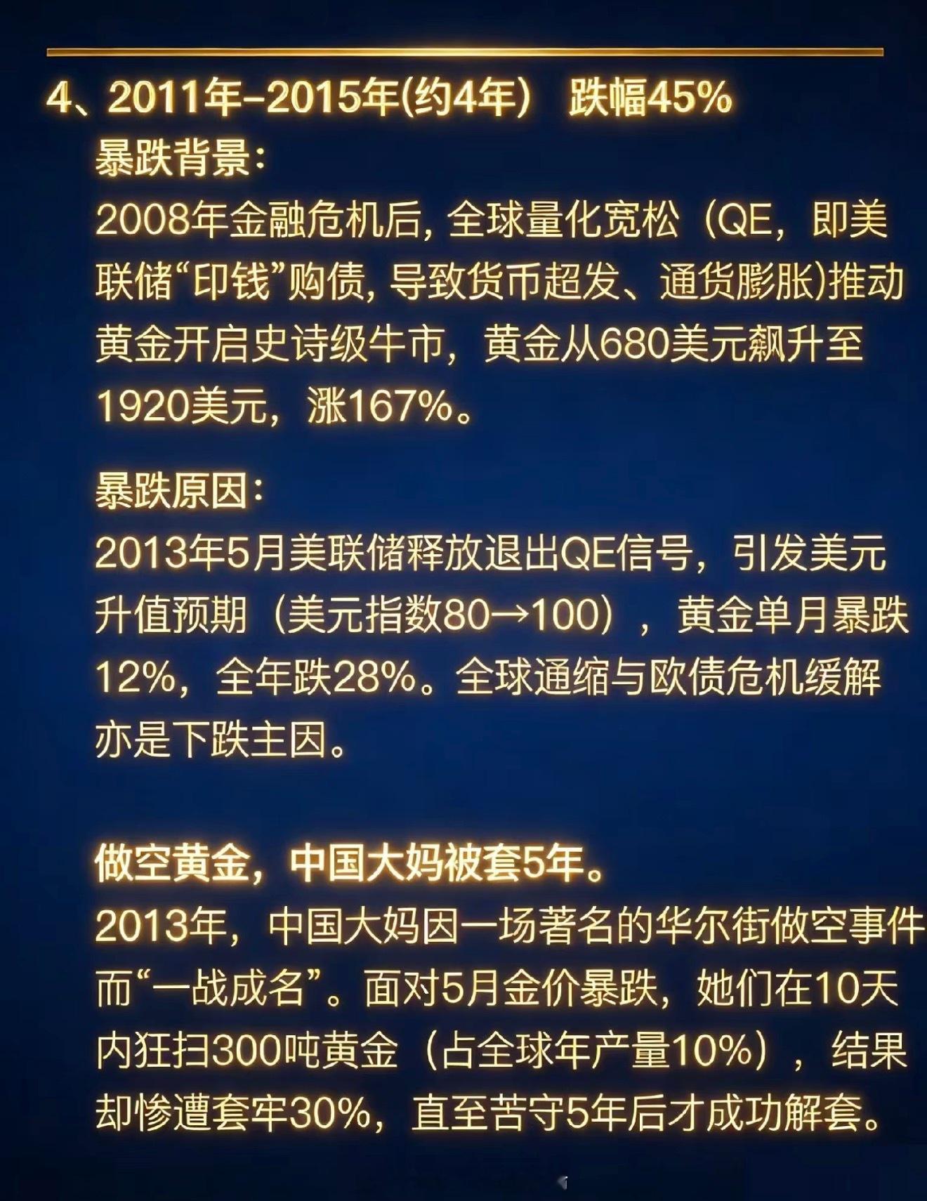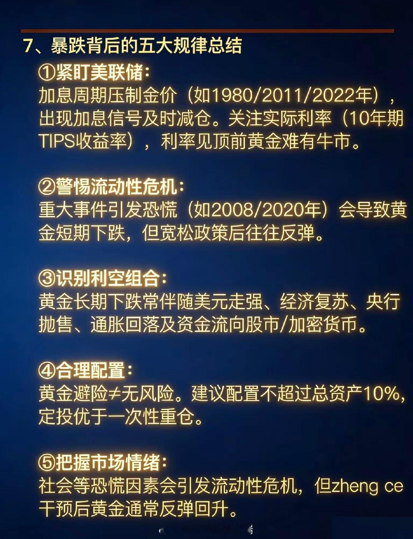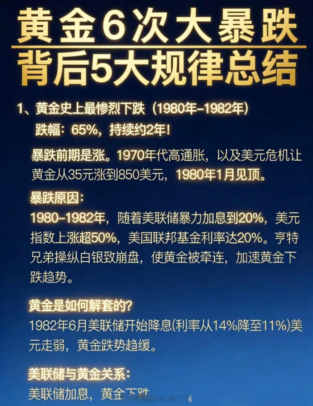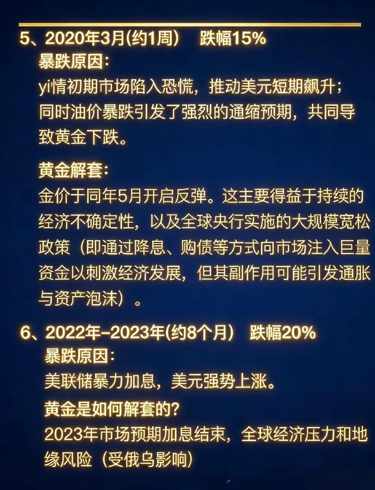 金银价为何突然大跌黄金6次暴跌规律汇总,金价上涨下跌都有规律~