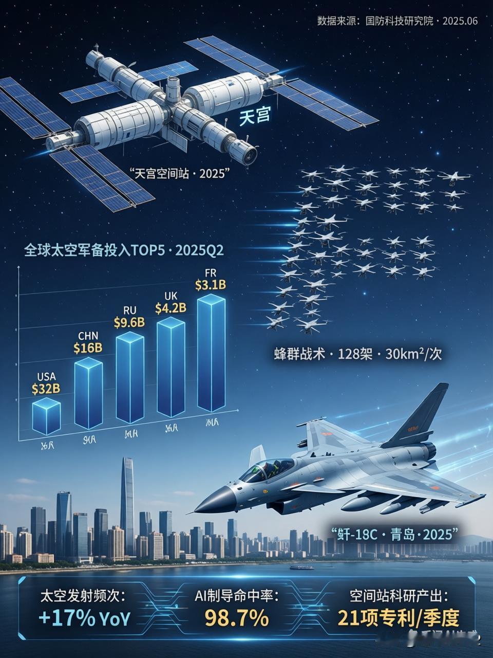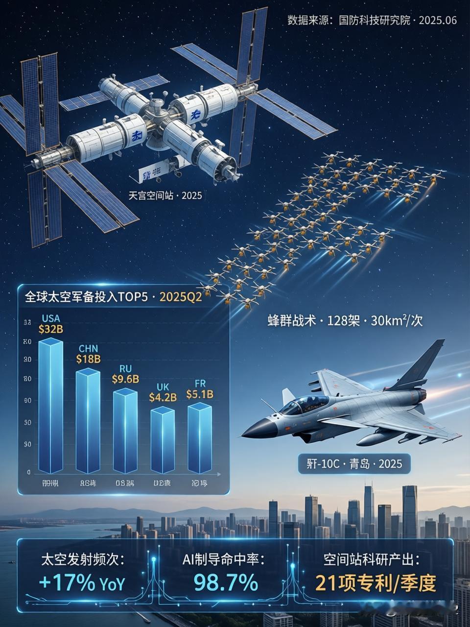 军事科技 今日是2026年2月2日,本周军事科技领域热点不断,“太空竞赛”与“无人机蜂群”堪称绝对主角。从NASA为载人绕月做最后的冲刺准备,到中东局势里无人机的攻防较量,技术的更新迭代正重塑战争形态。 以下是我为你梳理的今日军事科技核心看点: 🚀 太空争霸:美国重返月球前奏,中国空间站稳步前行 美国载人绕月关键测试(阿尔忒弥斯2号): NASA正为阿尔忒弥斯2号任务开展最为关键的模拟倒计时测试。这枚98米高的太空发射系统(SLS)火箭已运送至发射台,工作人员正在进行超低温燃料加注演练。若一切顺利,最早2月8日,4名宇航员将搭乘猎户座飞船进行绕月飞行。此次任务不仅是技术验证,还携带了莱特兄弟飞机碎片等“文物”,旨在彰显其历史正统性。 中国空间站稳步推进: 神舟二十一号乘组在轨已满三个月,航天员们正按计划推进航天医学实验(如药代动力学样本采集)和微重力物理科学实验(维护无容器实验柜)。这表明中国在长期太空驻留和空间应用技术方面已迈入常态化运营阶段。 🤖 无人化战争:蜂群战术与反制技术的较量 伊朗“蜂群”威胁:伊朗在波斯湾演习中出动500架无人机,模拟对美军航母战斗群的“饱和攻击”。这一战术凸显了传统防空系统在面对低成本、大规模无人机集群时的脆弱性,迫使防御方必须探寻新的应对办法。 北约的“抗量子”防御:针对未来量子计算机可能破解现有密码的隐患,北约正在测试抗量子加密技术。这是为确保在未来高强度对抗中,指挥通信链路不被敌方窃听或干扰切断。 ⚔️ 地区冲突中的技术痛点 星链断网与战场“失明”:在俄乌战场,星链网络因速度受限,致使乌军高速飞行的无人机出现断连,导致战场透明度大幅降低。这暴露出过度依赖单一商业通信系统的巨大风险。 后勤保障的科技突破:我军在高原作战保障方面取得实质性进展,高原制供氧保障体系已基本建成。从制氧方舱到单兵制供氧器材的全面配备,实现了从“救命氧”到“战斗氧”的升级,极大提升了极端环境下的持续作战能力。 ✈️ 航空动态:八一飞行表演队海外亮相 歼 - 10C海外炫技:中国空军八一飞行表演队换装歼 - 10C后,时隔六年重返新加坡航展。在樟宜机场上空,六机编队拉出象征中新友谊的彩烟,并展示了“六机编队横滚”等高难度动作。这不仅是飞行技术的展示,更是中国航空工业硬实力的自信彰显。 💡 深度观察 当前军事科技发展呈现出“攻防成本倒挂”的态势:进攻方(如使用无人机蜂群)成本低廉且易于量产,而防守方(如研发抗量子加密、升级防空系统)则需投入巨额资金。对于投资者和观察者而言,军工电子、抗干扰通信以及低成本防御武器(如激光、微波)将是未来很长一段时间的核心领域。