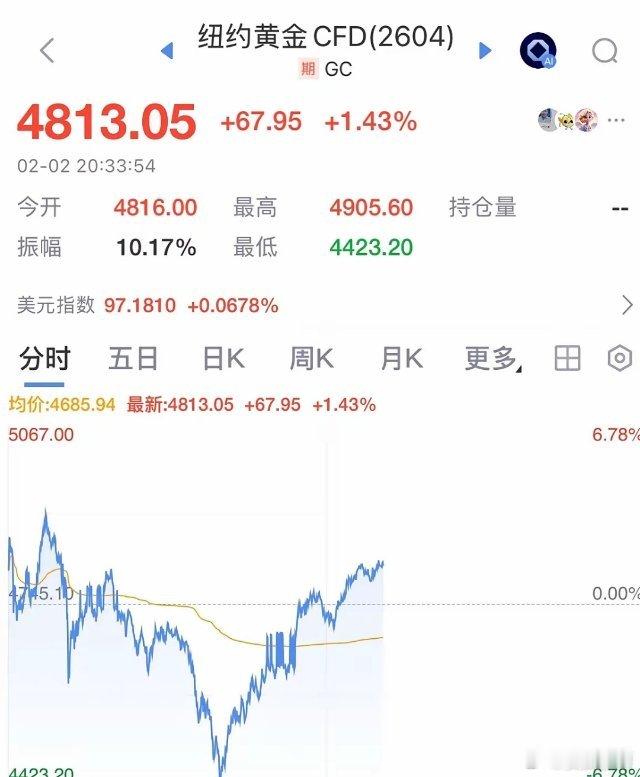 快讯!纽约金价大幅反弹突破4800美元每盎司,原因曝光你敢买吗:金价反弹暴涨!2026年2月2日晚上20:30分,国际金价大幅反弹超4800美元盎司,日内反弹超400美元,反弹涨幅超10%,大涨原因一是特朗普发话了,他希望美联储降息。白银板块也大幅反弹超过了83美元。二是短期黄金和白银已经超跌了,今晚属于超跌反弹,预计后续黄金和白银后续将进入震荡阶段行情,大跌了低吸,大涨了卖出是应对震荡行情的合适战略!