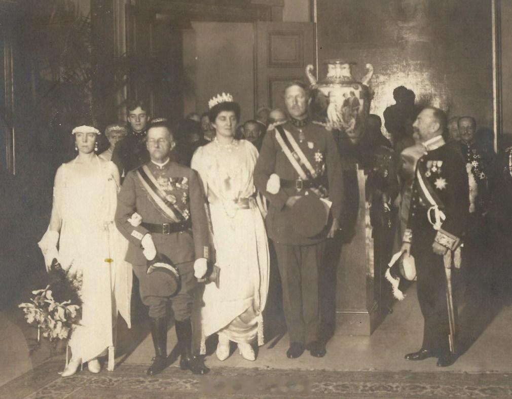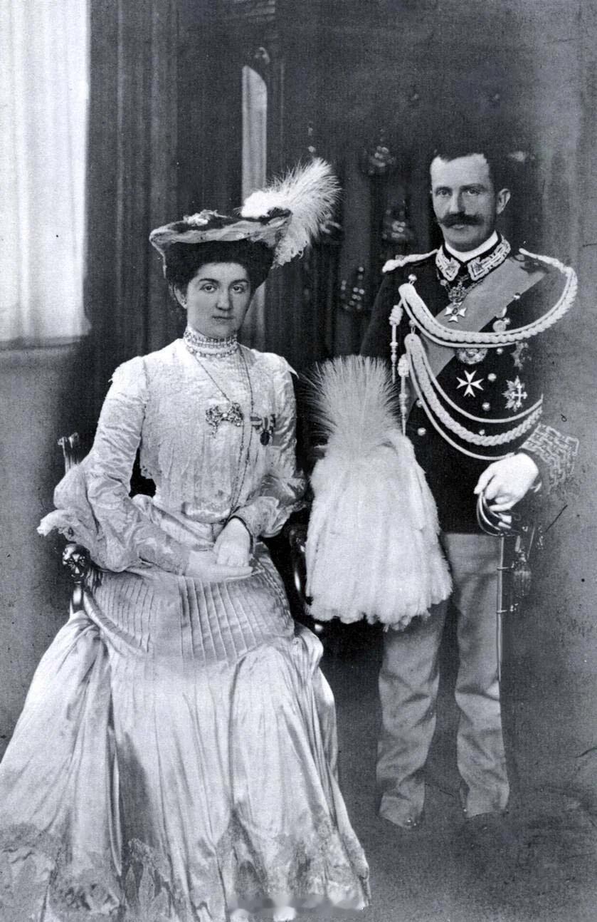 老照片 意大利维克托·伊曼纽尔三世身高只有152,而他妻子伊莲娜180还可能往小里报抹了零,这对夫妻走到哪都是一道亮丽的风景线啊图4是他们访问未来亲家比利时,交叉搭配瞬间和谐了(当时比利时伊丽莎白王后也很矮)