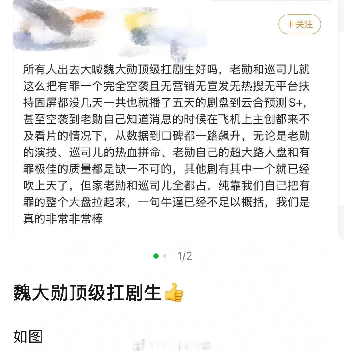“所有人出去大喊魏大勋是‘顶级扛剧生’好吗!”有人知道魏大勋扛了哪部吗???