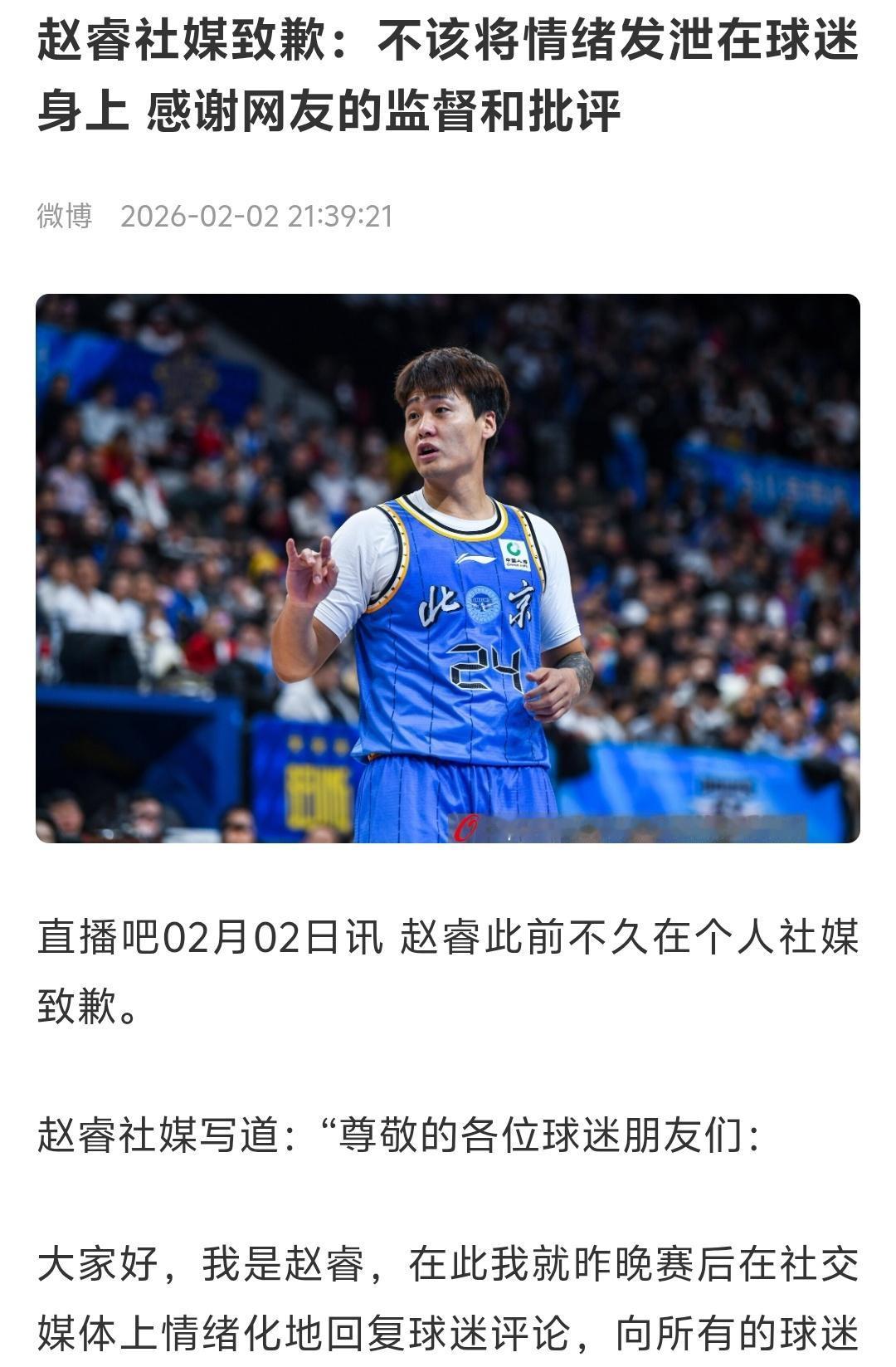 虽然赵睿道歉了,但是篮协必须严肃处罚赵睿,因为这一次赵睿的言论是极其错误的,是在破坏团结的言论,是一种“地域黑”的言论,这比在球场违体犯规、攻击裁判甚至罢赛都严重的多! 赵睿这不是第一次刷小性子了,以前大家很快可以原谅他,但是这一次篮协必须重罚赵睿,让他好好清醒一下,别觉得中国篮球圈没他就不行了!