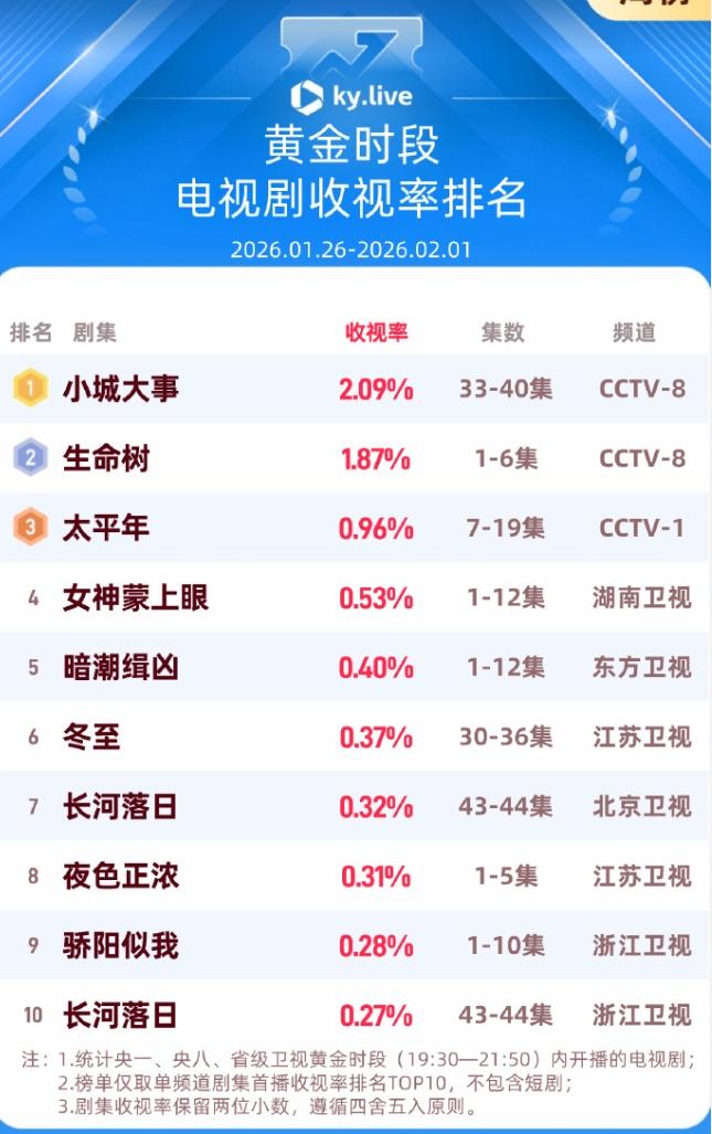 《小城大事》CVB平均收视率已出! 央视收视日历发布,《小城大事》收视率1.79
