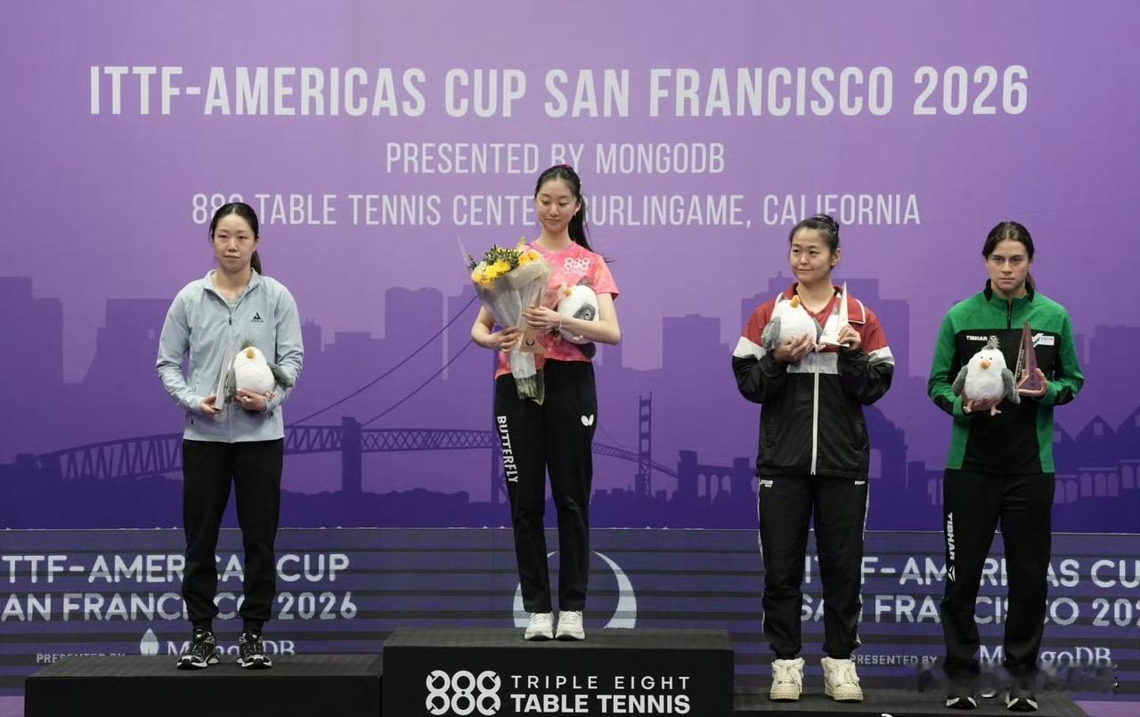 ITTF美洲杯2026 女单颁奖仪式 冠军:🥇王艾米🇺🇸 亚军:🥈张安🇺🇸 四强:🥉高桥·布鲁娜🇧🇷 🥉张默🇨🇦 2026.2.1