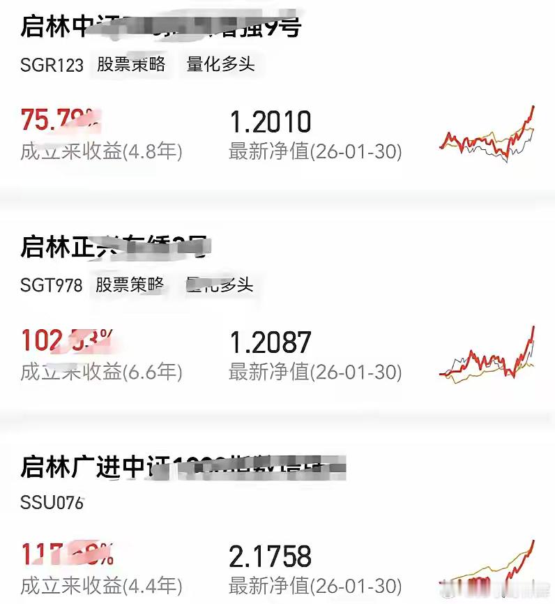 我去看了下,启林2025年底规模大约150亿至200亿,势头非常猛。业绩也很不错,目前不少成立4~5年的产品都实现了翻倍,今年收益率也已来到10%。
