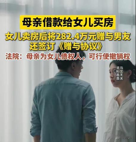 安徽。什么是顶级恋爱脑?一位妈妈出资403万元购买了两套房产,都登记在女儿名下,谁知道女儿谈恋爱后,私自将其中一套给卖了,变现282.4万元赠送给了男友,男方害怕女子反悔,还让女子签订了赠予协议。没多久,男子跟女子闹分手,妈妈得知女儿做下如此荒唐事,立刻把男子给上诉了。 广州日报2月1日报道了这则新闻。 据报道称,当时妈妈买房写女儿名字的时候,幸亏妈妈多做了一件事:签订了借款协议。就是说,属于女儿找自己借钱购买的房产。多亏了这个举动,最后成功将钱款给追回来了。 一位妈妈李某,出资403万元购买了两套房产,因为女儿已经成年了,作为妈妈想到要为女儿的将来考虑,决定把这两套房子都登记在女儿的名下。 去办理房产登记的时候,李某凭借自己多年的经验,想到要多进行一步,那就是准备让女儿赵某出具一份借条。 换句话说,这个意思就是女儿是找妈妈借的钱,买下了这两套房子。 妈妈这样考虑,也是为孩子着想,毕竟孩子涉世不深,缺乏一定的生活经验,万一以后遇人不淑,还能有反悔的机会。 当然,没事那就万事大吉,没人想要有纠纷。 不过后来没多久,女儿确实整幺蛾子了。 女儿赵某是个恋爱脑,自从谈恋爱之后,一直对男朋友曹某听之任之。曹某得知女友名下竟然有两套房,他就开始打房子的主意了。 而那位耳根子软的女儿,居然就被男友真的给洗脑了,她听信了男友的话,竟然要将其中一套房子给卖了。 而妈妈李某对这件事是一无所知,根本不知道自己的女儿,竟然会如此无脑。 当女儿赵某将房子给卖掉了之后,到手282.4万元,一转身,全都无偿奉献给了自己的男友曹某。得到了这笔钱款,曹某可真的是开心的很。 但是曹某转念一想,万一之后她后悔怎么办,于是就开始怂恿女友赵某跟自己签订一份赠予协议,书面协定好,这属于赵某对于自己的无偿赠与,之后也不可以反悔。 而赵某还真的签订了,表示自己确实是自愿将这笔282.4万元的巨款,无偿赠送给曹某。 拿到这份赠予协议之后,曹某的心才算定了下来。这下曹某心想:有了这个,我还要她干嘛,随时就可以把她给甩了。 果然,没多久之后,曹某感觉俩人感情也淡了,没有相处的必要了,就提出了分手。分手之后,赵某才把卖房这件事告诉了妈妈。 妈妈李某得知之后,对于女儿的做法非常气愤,但是冷静下来之后,她准备找曹某理论,并且将他给上诉了。 根据审理之后认定,母亲作为女儿的债权人,可以行使撤销权。因为之前女儿赵某给妈妈签订过一份欠条,购买了房产,如今钱款还没有还清,她不可以随意去处置债权,作为债权人的李某,可以行使撤销权。 最后,判定也下来了,支持了妈妈李某的诉求,依法撤销赵某跟曹某签订的赠予协议,判令曹某需要立即返还282.4万元。 本案释法:女儿找妈妈借钱购买了房产,钱款还没还清,但是女儿却将房子卖掉,将房款赠送给男友。妈妈是否可以主张男友将房款还给自己? 根据《民典法》第五百三十八条规定,债务人以无偿转让的方式去处理财产权益,影响债权人债券实现的,债权人可以请求相关部门撤销这一行为。 由此可知,也就是说,妈妈李某可以提供证据,当初是自己给女儿的钱款去购买的房产,有欠条等证明,那么妈妈就是合法的债权人。 本案中女儿赵某将房屋卖掉并且赠送给男友,这个行为属于“无偿转让财产”,就会影响到李某债券的实现,妈妈可以依法请求相关部门撤销这个赠予行为,要求男子偿还钱款。 遇到了顶级的恋爱脑,这位男子就想要空手套白狼,白白得到别人两百多万的房款钱,这个男的也是打得一手的好算盘。 但是,这位女儿的恋爱脑思路,也更加试令人费解,着实大方的很。 或者,更多的是应该听听自己的老母亲的话,作为过来人,她是很有经验的,一开始留了一手,最后才没有造成如此巨大的损失。 对于本案,您又怎么看呢,不妨评论区里留言,大家一起来讨论吧!
