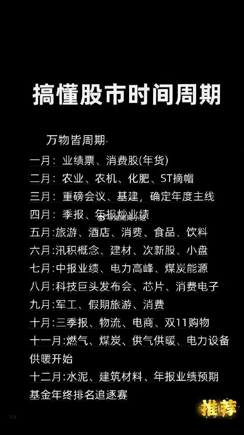 马上开盘了看看也许对你有帮助。开盘口诀。1到12月周期炒股的板块。喜欢就收藏加留言评论关注谢谢