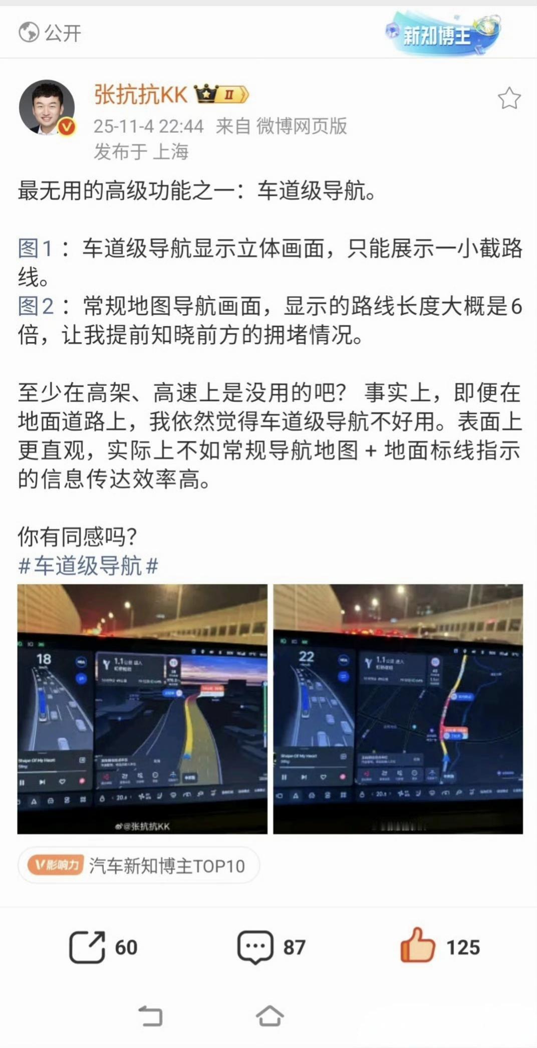 车道级导航好用吗 抗博@张抗抗KK这个结论,我也严重同意,车道级导航真不好用。
