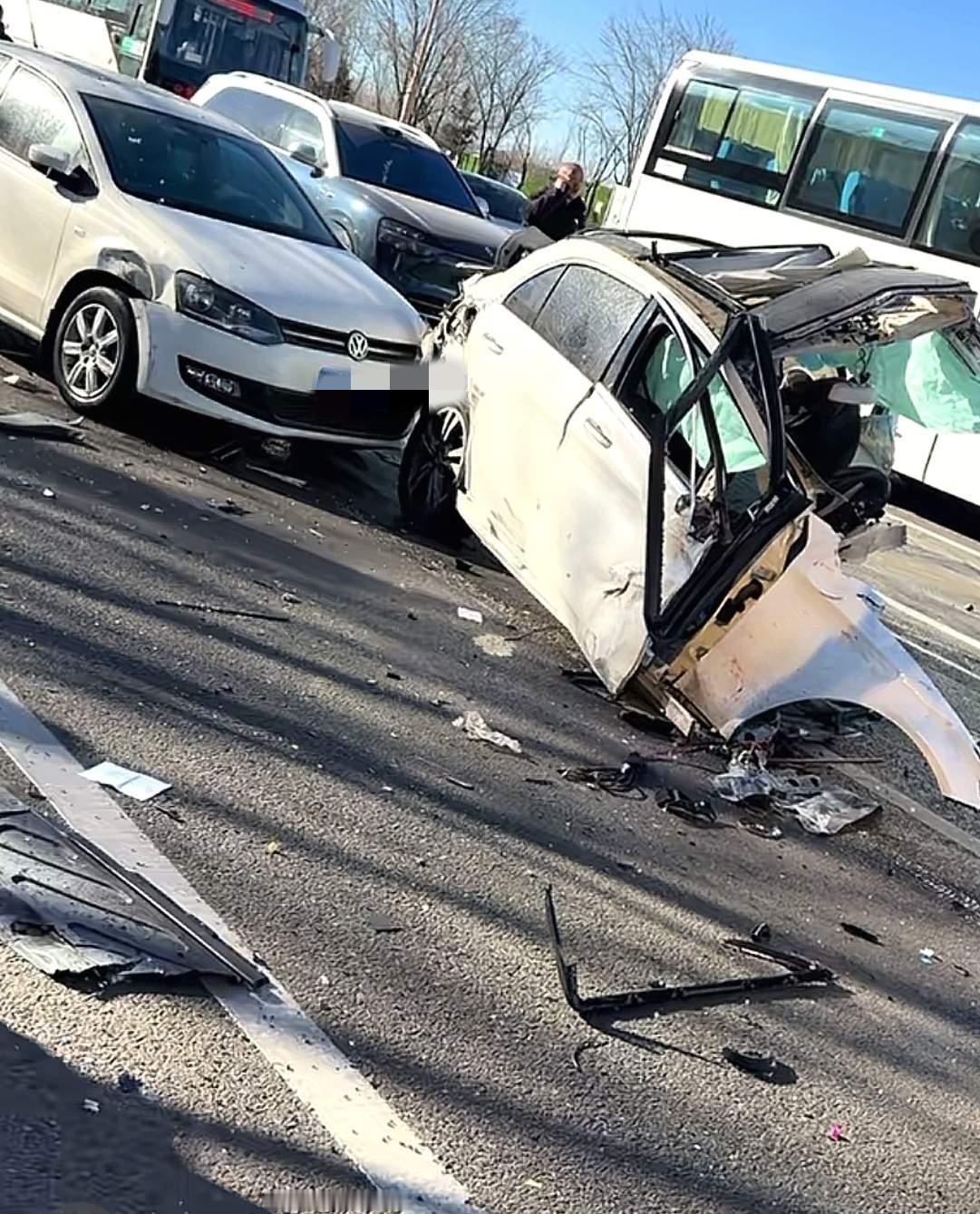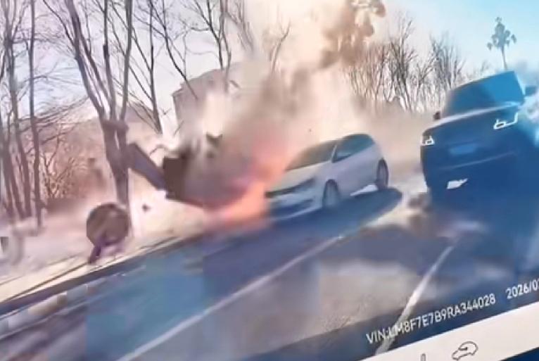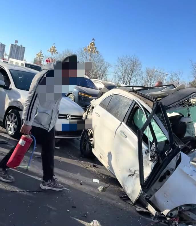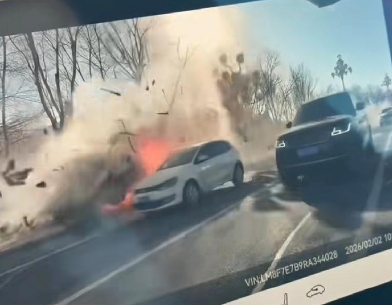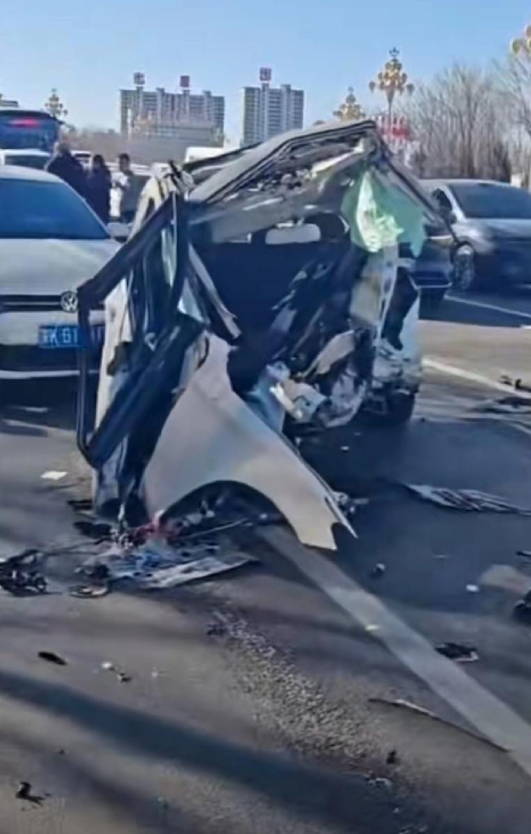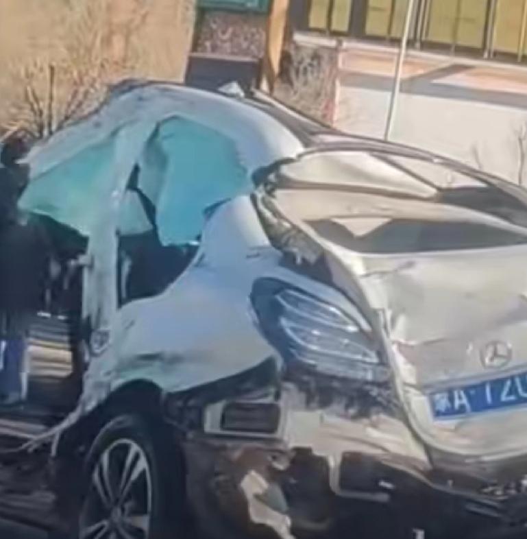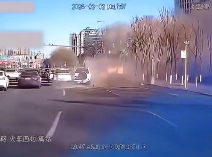 太吓人了!一辆白色奔驰失控漂移,先撞一辆前车,再铲断路边灯杆,最后只剩一堆废铁。事发2月2日鄂尔多斯东胜区。2月2日,一段惨烈交通事故视频在网上疯传,引发关注。这是几段来自行车记录仪拍摄的画面,画面中,一辆白色奔驰车从视频车左后方高速冲入画面,可以明显感觉到该车已经失控,在遇到前面等待通行车辆时,奔驰发生了明显漂移,但还是撞到了前车的右后方,但奔驰车并未减速,径直撞向了路边的灯杆,随着一团烟尘腾起,火团乍现,紧跟着便是高大的灯杆轰然倒地。从另一段视频可见,此时的奔驰车已经冲上了人行道,灯杆被拦腰撞断,在撞击的瞬间,奔驰被解体,并爆出明显的火光。事发后的现场惨不忍睹,奔驰车的前半部碎裂不见了,前轮留在了灯杆处,后半部扭曲变形,成了一堆废铁被抛在马路上,现场一片狼藉。据现场目击者称,该起事故发生在2月2日上午的10点17分左右,地点位于鄂尔多斯东胜区。事故造成多车被波及,奔驰车司机生死未卜。具体事发原因及人员伤亡情况有待官方通报。社会热点 鄂尔多斯发生一起惨烈交通事故 鄂尔多斯一奔驰车撞灯杆后解体