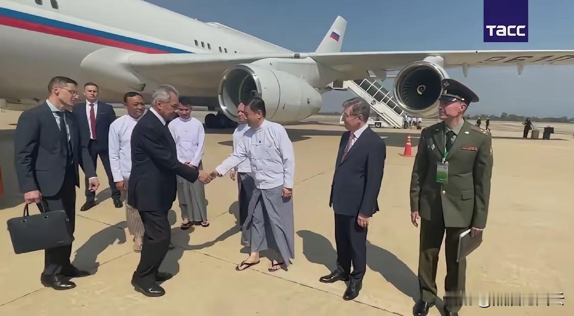 绍伊古离开北京后直飞缅甸, 着装反差太大了 2月2日绍伊古结束北京行程后, 并未直接返回俄罗斯, 而是调转行程直飞缅甸, 这一行程安排颇受关注。 镜头里的他身着笔挺的西服套装, 搭配锃亮皮鞋, 一身正装尽显沉稳绅士风范, 细节处的精致感拉满; 而前来接机的缅甸工作人员, 却是薄款夏装加身, 脚上更是踩着随性的人字拖, 网友们好奇此番绍伊古突访缅甸, 背后藏着哪些重要考量。