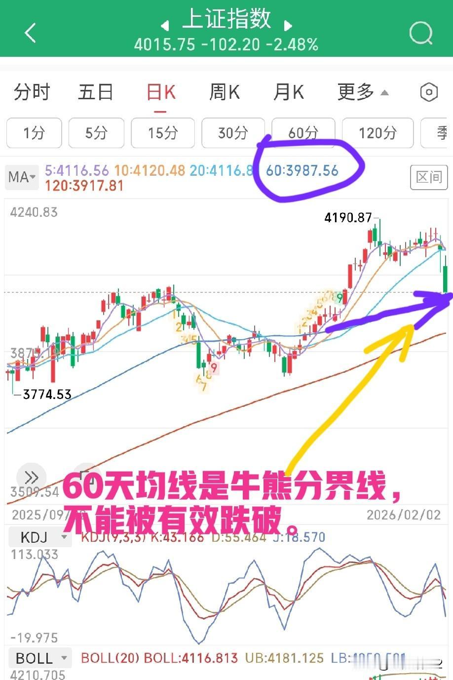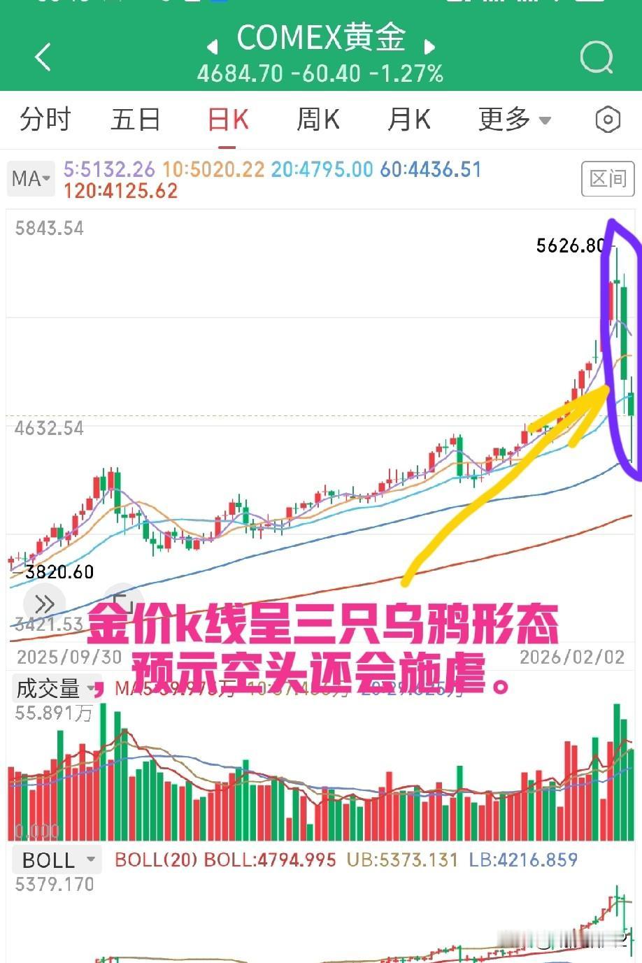2月3日早评。得益于华尔街资本大力做空黄金,隔夜美元指数和美股三大指数出现反弹(图1)。前者与后两者之间的跷跷板效应还是非常明显的。 昨晚的资源类大宗商品,除了白银勉强收平,其它继续全线下跌(图2、3),但是跌幅明显收窄。那么,这些资源类大宗商品特别是黄金是否就可以抄底了呢?答案是还不到时候。期货市场的历史经验告诉我们,空头一定还会继续加大头寸,不把加了强烈杠杆多头彻底打趴他们是不会收兵的。现在空头是华尔街资本,多头是谁呢?当然是大量黄金投资者。 大家看一看金价走势,K线呈三只乌鸦形态(图4),预示空头还会施虐。不把金价打到4000~3500美元/盎司区间,他们是不会善罢甘休的。这个区域是2025年4月~12月磨了大半年的价格区间(图5),也是大量黄金期货多头加仓加杠杆的区间。所以现在谈抄底为时尚早,要有耐心和定力。 回到A股,调整什么时候会结束?从指数层面讲,3987点是60天均线点位,是一道强劲的牛熊分界线(图6)。毗陵猎人认为后期指数会在3987±20点区间结束调整,然后磨底向上。技术上把股价回调至60天均线再掉头上涨称“青龙取水”。 另外,从决定买卖关系的三个指标KDJ、RSI和乖离率来看(图7、8、9),已经逐步进入超卖区域。空头力量的逐步衰竭虽然不能马上形成反转,但会逐步止跌企稳,我们就等一个右手入场机会。这个磨底需要一些时间。 最后谈一谈板块问题。近期我们要抓住高低切换和大小切换的市场风格,一定要避开前期高标股,切记切记。各位朋友,如果你每天都是认真复盘的,那么从月K线上看,我们当下能抓到的只有光伏、电池、白酒等有限的几个板块。敬请关注。 个人观点,不构成投资依据,不喜勿喷。祝大家今日好运。