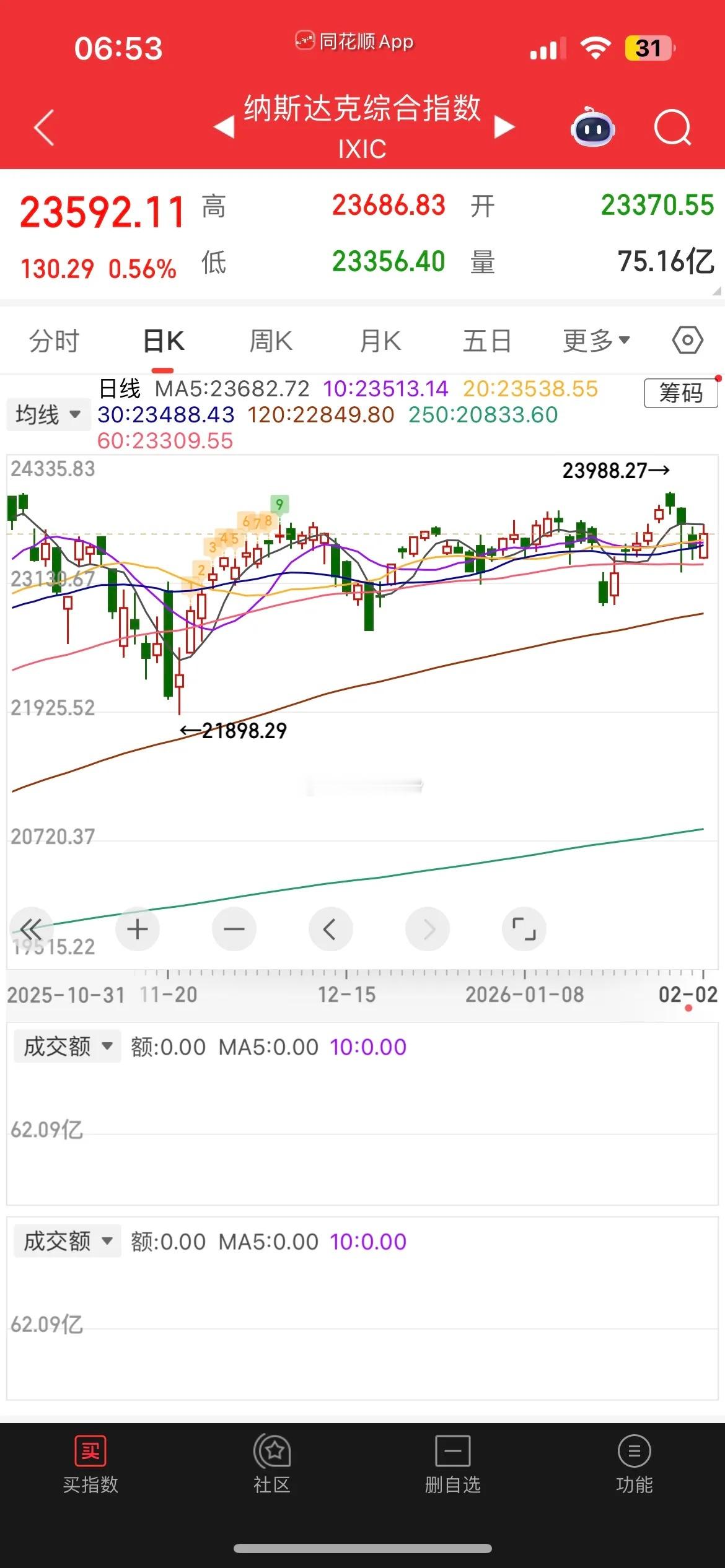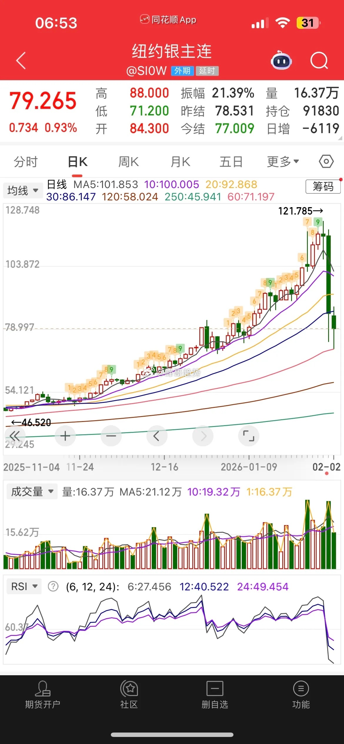 一觉醒来,外围存储暴涨,贵金属探底回升,黄金收跌1.35%,白银收涨0.9%,纳指金龙指数跌0.65%,中概股普跌,阿里跌0.7%,京东涨0.18%,百度大跌3%,哔哩跌超2%,拼多多涨超2%,小鹏汽车跌逾8%,阿特斯太阳能微涨,富时A50涨0.46%,恒生主连涨0.63%,这样看今天我们贵金属方向大概率会有所止跌,而市场也会迎来弱修复,港股今天会小幅高开。