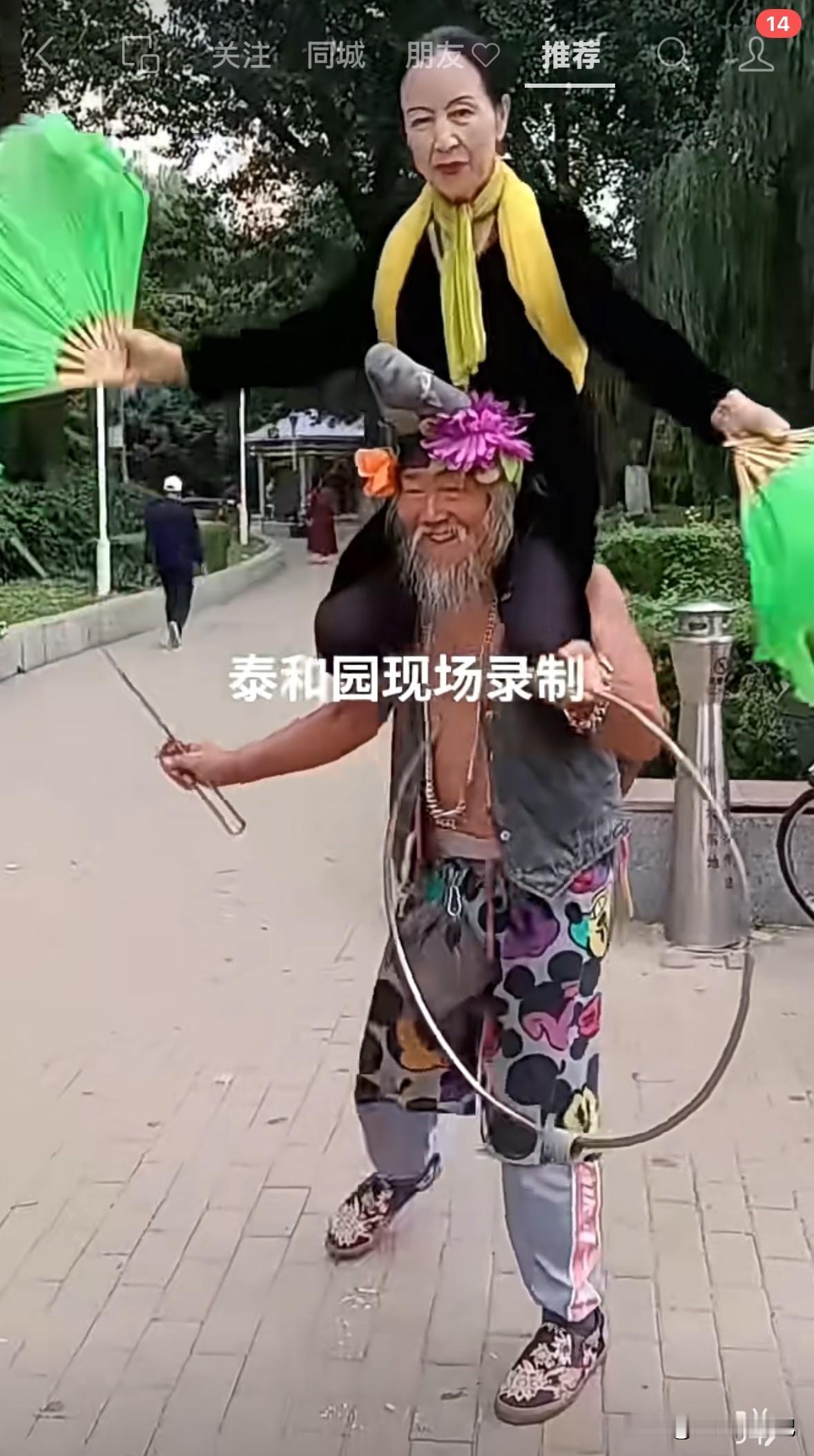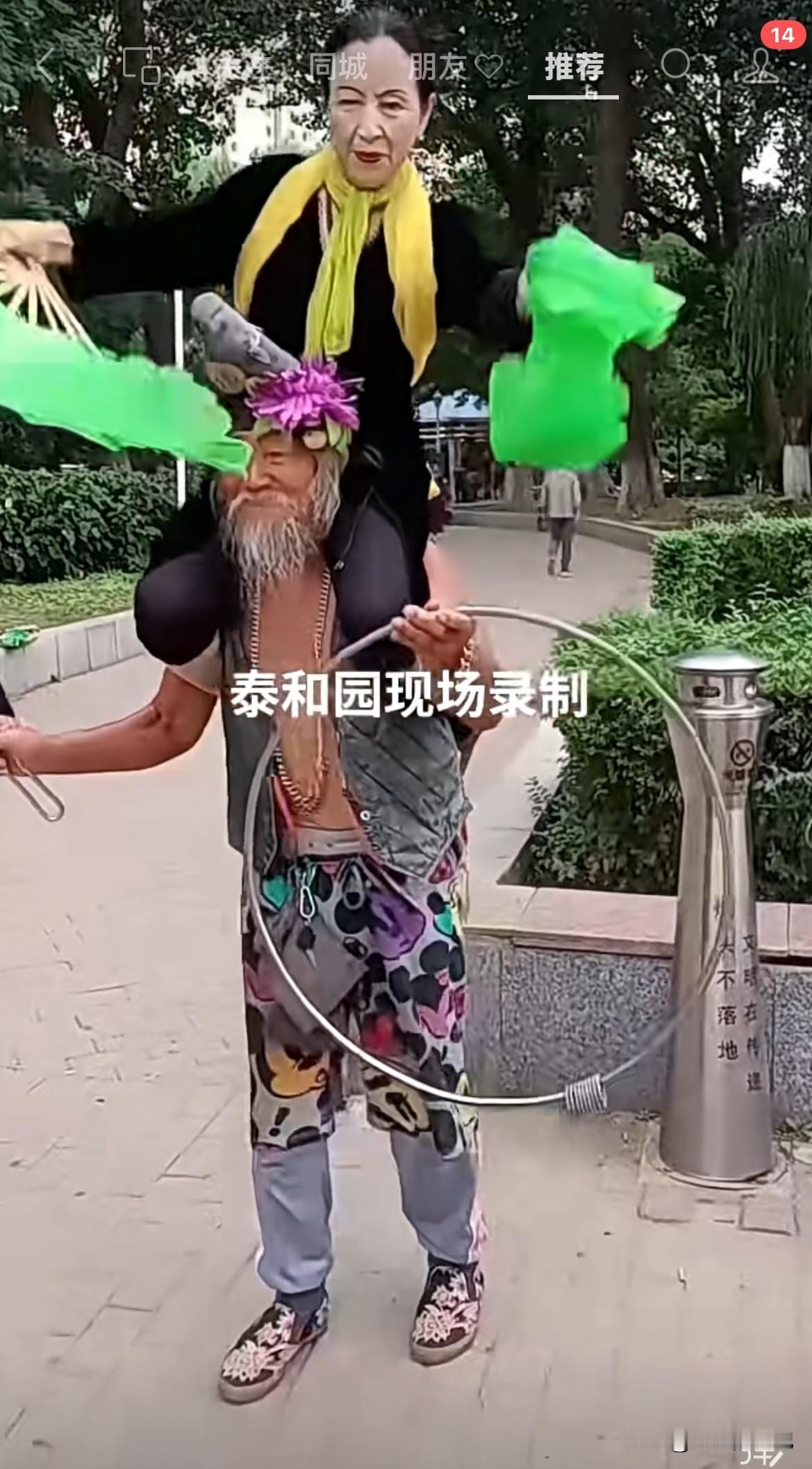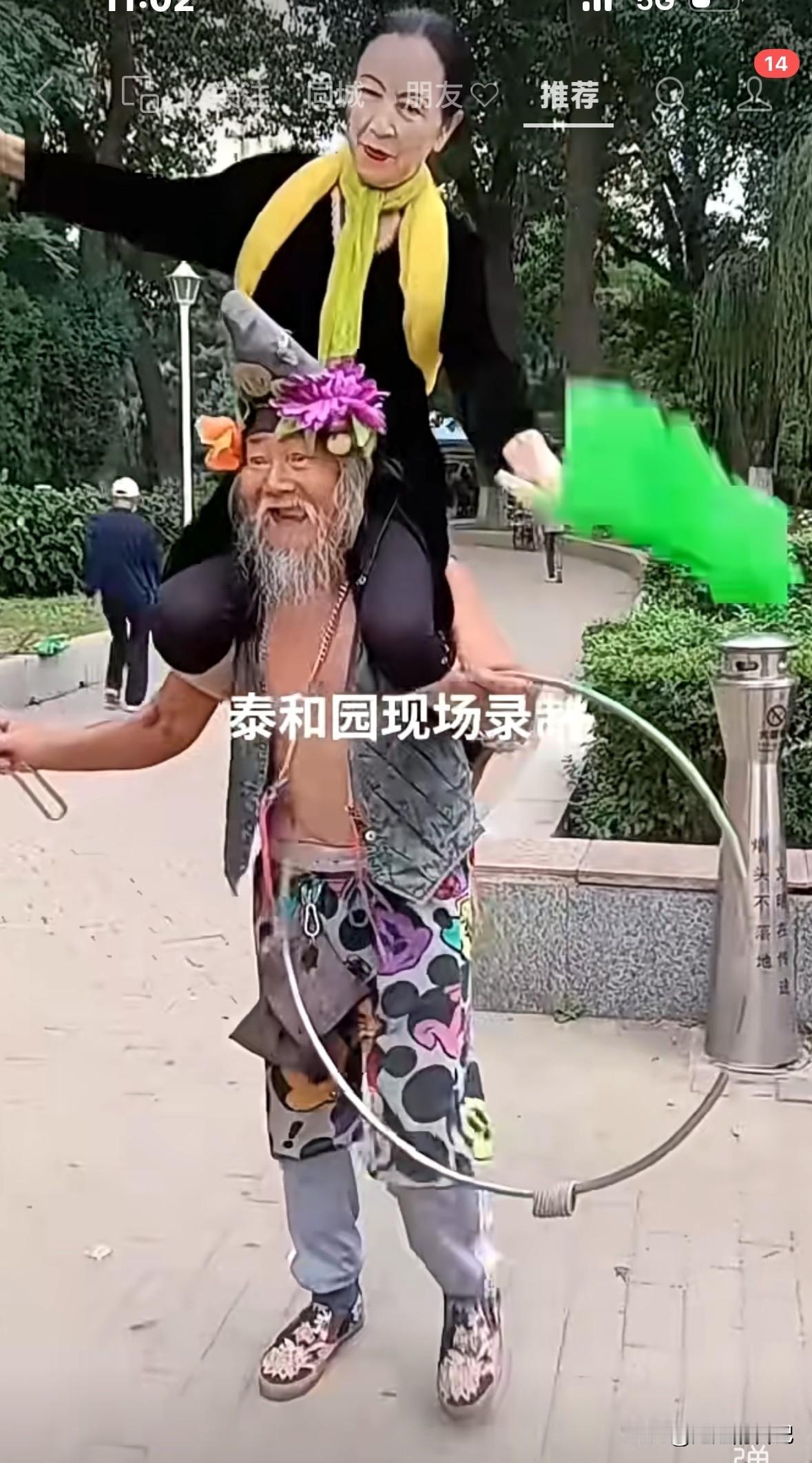 一个80多岁,一个70多岁,两个人加起来150多岁,就做危险动作,也不知道儿女为啥不出来管管。 老太太先站在花坛高处,老头低下头,把头从老太太两条腿中间伸进去,把老太太驼起来,而且还做着各种动作。 只见老太太稳稳的坐在老头肩膀上,两条腿从老头腋下盘到后面,看的别人胆战心惊。 如果老太太掉下来,估计摔不残废也差不多, 没羞没臊的两位老人,整天各种下流动作,让人看了都感觉臊得慌,但是,两个人乐此不疲,好像老了老了,年轻时候没疯够,赶紧把年轻时候不敢做的事情都做了,免得老了,动不了的时候后悔。 老年人没有老年人该有的样子,破坏社会风气,没有羞耻心,真是老了老了,晚节不保呀。