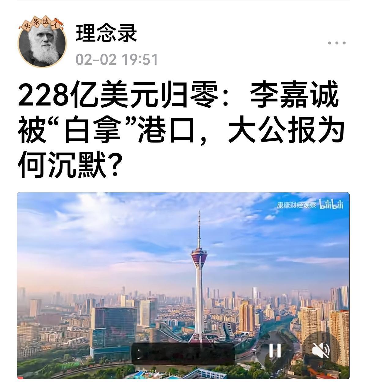 【李嘉诚左右为难?】 想当年无人敢去内地投资,李嘉诚做出榜样,无数人跟着他投资内地。 那时候没有说拿地就要开发,很多人想着赚快钱李嘉诚坚信未来走向土地值钱。 当李嘉诚判断国内房地产要下跌,提前清空时候,被骂赚了钱就跑,好像被套牢就是爱G。 这次李嘉诚卖港口,借着特朗普称霸全球的东风,想把自己租用不赚钱烫手山芋甩掉,卖给有钱的美国公司。 结果大公报横空出世,大书特书具有战略意义的港口卖给美国人?这不过也是李嘉诚租用的而已。 在巴拿马运河无数港口中,李嘉诚租用竟然有战略意义,好吧巴拿马收回了,李嘉诚228美金打水漂,大公报没事人一样默不作声。 还好沈逸出头鸣不平,到底是为李嘉诚扳回一局,还是自己出风头? 什么巴拿马自己不做人,算什么东西,骂完结束,赢得美人一笑。 只有李嘉诚看着228亿,要知道李嘉诚的长实集团是上市公司,这次损失不光是李嘉诚个人损失,而是集团的损失,所有买股票的股民的损失。 大公报脸一甩,没事人一样李嘉诚 李嘉诚公司 80岁的李嘉诚 李嘉诚港口 李嘉诚自传 李嘉诚访谈