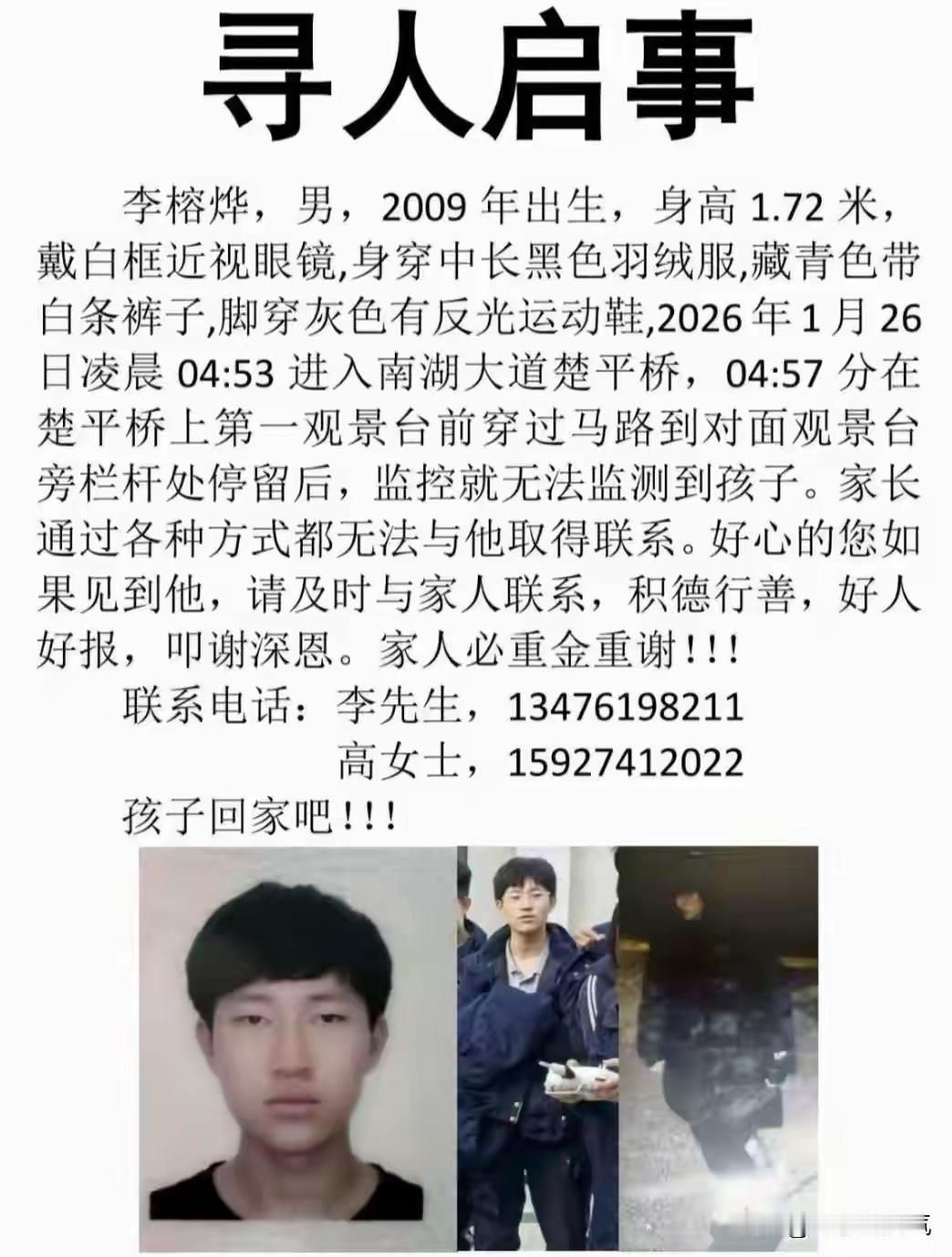武汉这名16岁男生失联已经第7天,仍然是毫无消息,他好像凭空消失了一样,怎么找都找不到。凌晨时分悄悄出门,走到南湖大桥上就失去了踪迹,大概率是选择了轻生,但也不排除其他的选择。 有网友表示:网络游戏毁了多少孩子和家庭?希望国家能出手控制一下,不要任由它去毒害我们的下一代,不能直接关闭就控制一下开放时间,可以像电视节目一样在固定的时间段开放,这样能平衡各方的利益,也不至于让人上瘾。 第五人格这类游戏千万别玩,沉迷游戏的孩子心脉损伤导致易怒易燥而抑郁,强烈建议监管部门下架这类游戏。 一个星期了还没找到,我还倒是有些高兴,因为桥下是个湖,跳下去的话7天了尸体肯定浮上来了,但没有发现,需没带手机、钱,有可能在手机没收后,第二天在玩电脑时就与外人联系好了逃走路线。 网络游戏害了一代年轻人,祖国的花朵就这样被手机游戏废了,将来靠什么接祖国的班,为什么国家对这样的问题无动于衷。 对此大家怎么看呢