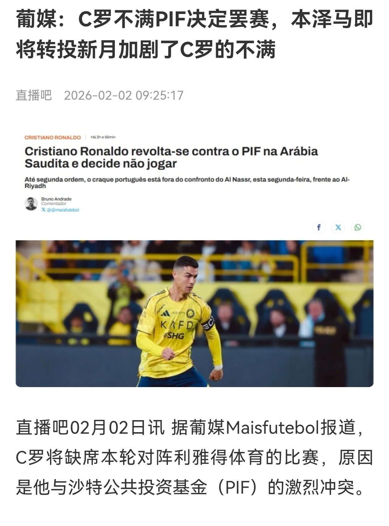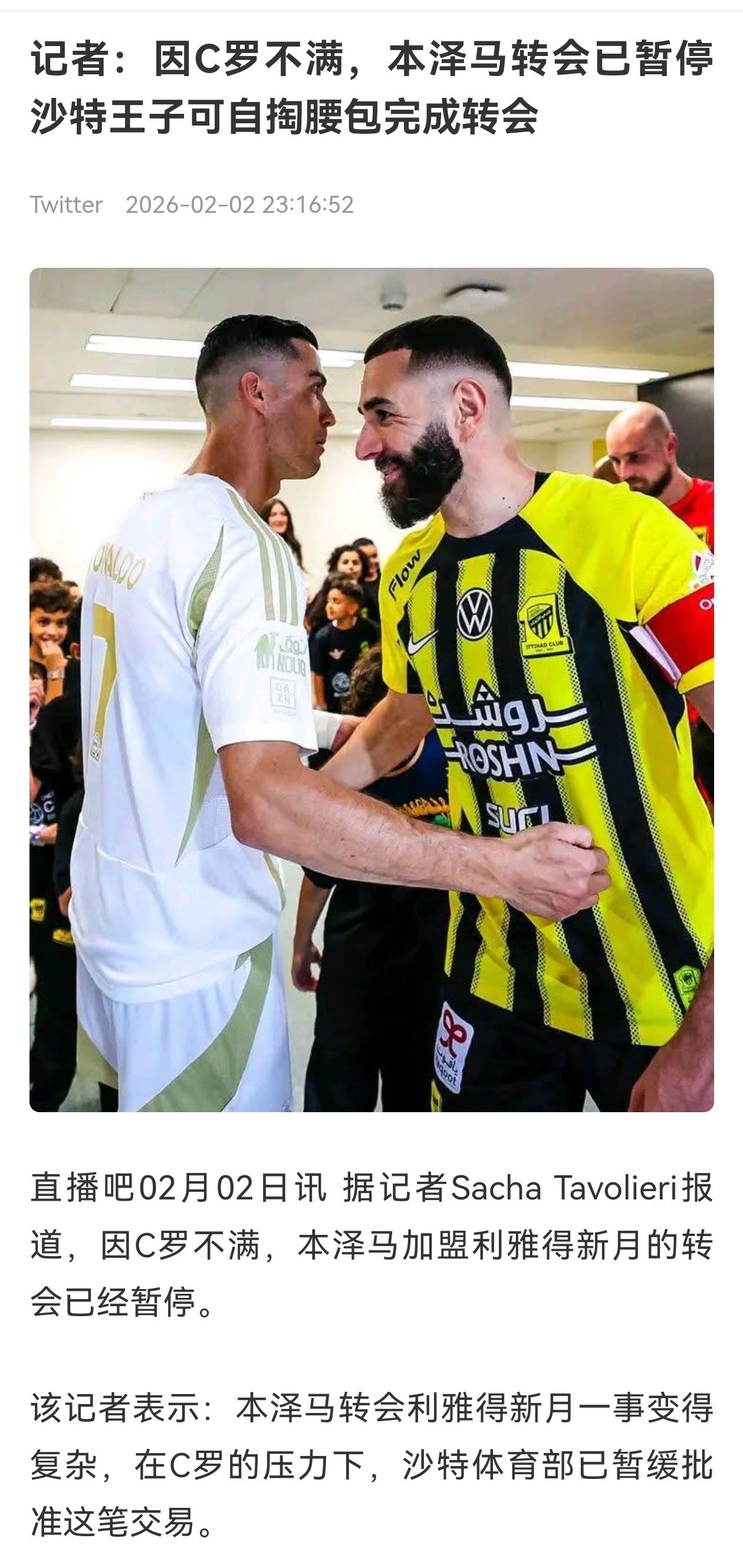 本泽马加盟利雅得新月c罗拒绝为利雅得胜利出战