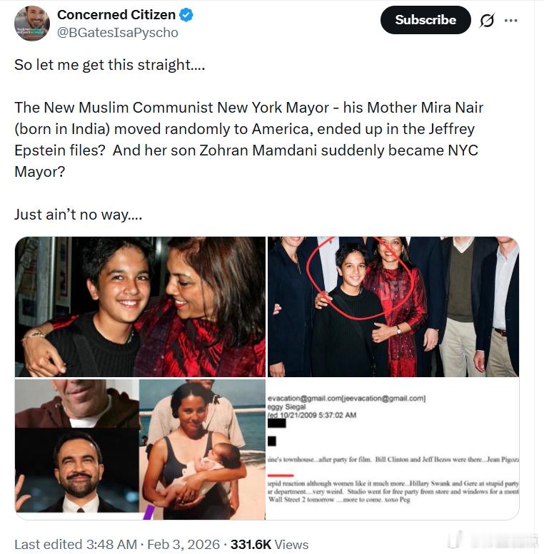 这位“穆斯林共*主*者”的纽约新市长——他的母亲米拉·奈尔(出生于印度)莫名其妙移民到美国,结果名字还出现在杰弗里·爱泼斯坦的档案里?