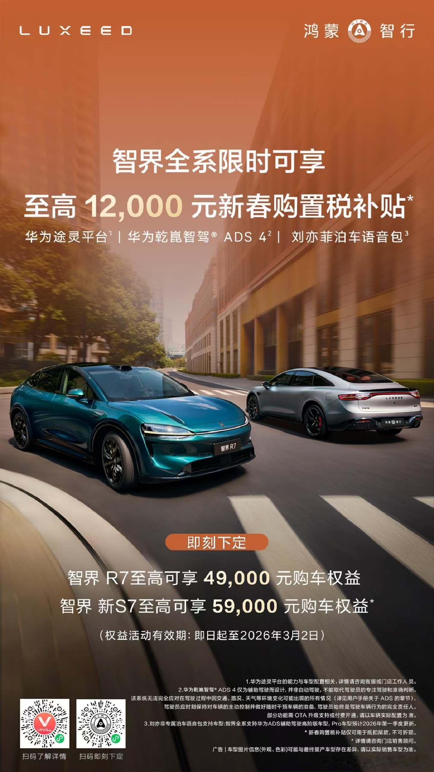 智界新权益,买车过新年智界r7智界s7