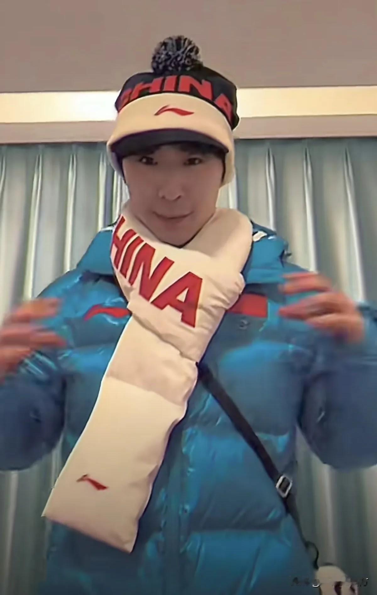 中国花滑名将金博洋展示米兰奥运会中国队队服,非常帅气[耶]