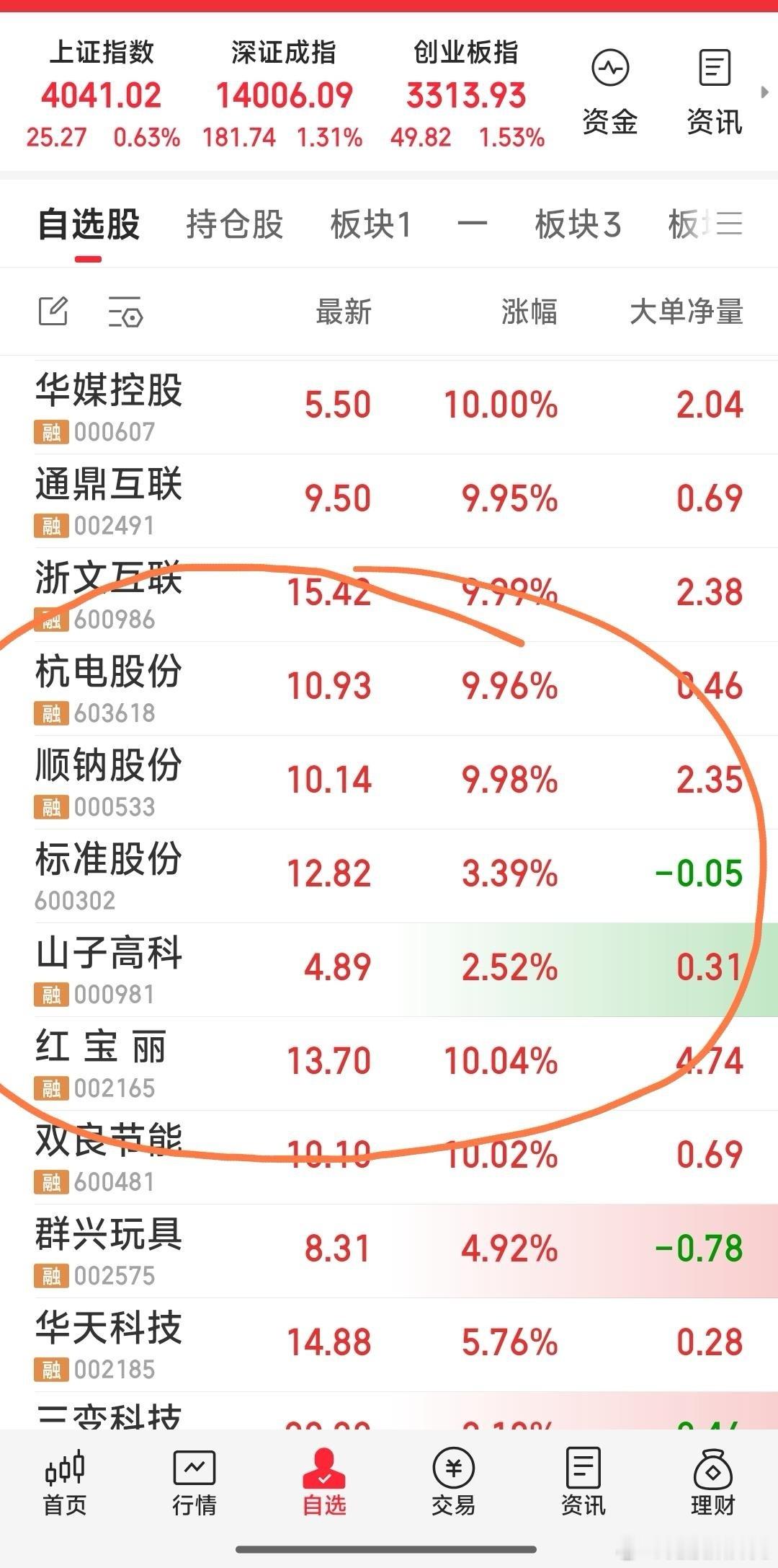 4,现手中三牛为:原有的标准股份,山子高科。,盘中接回老朋友红宝丽。
