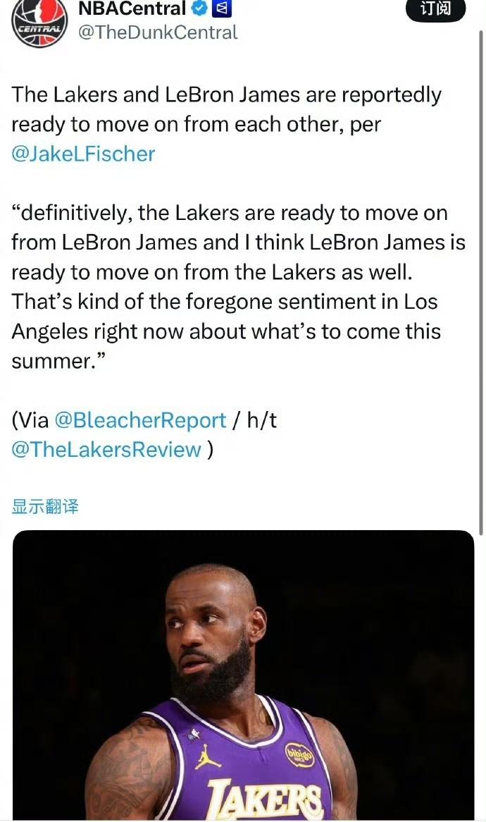 Fischer:湖人和詹姆斯似乎都已经准备好与彼此分道扬镳。 “可以确定的是,湖人已经准备好与勒布朗·詹姆斯分道扬镳,我认为勒布朗也同样准备好离开湖人。这是目前洛杉矶对于今夏走势的普遍看法。