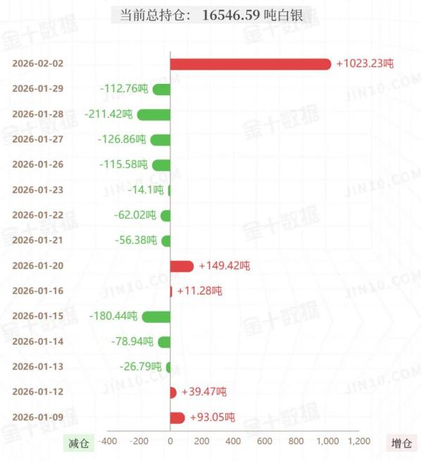 周一贵金属延续回调趋势, 现货白银价格继续回落7.02%。 那么和其有一定关系的 白银ETF持仓变动如何? 全球最大白银ETF机构 iShares Silver Trust2月2日持仓 较上个交易日增加1023.23吨, 为其历史第三大单日增幅纪录, 当前持仓量为16546.59吨。 随着白银ETF的大幅增加, 也使得周二出现强反弹行情!