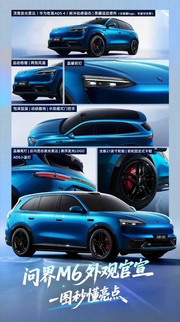 4. 智驾小蓝灯的位置依旧是经典三个位置六个灯,前面参考问界M7,后视镜,后面参考图里