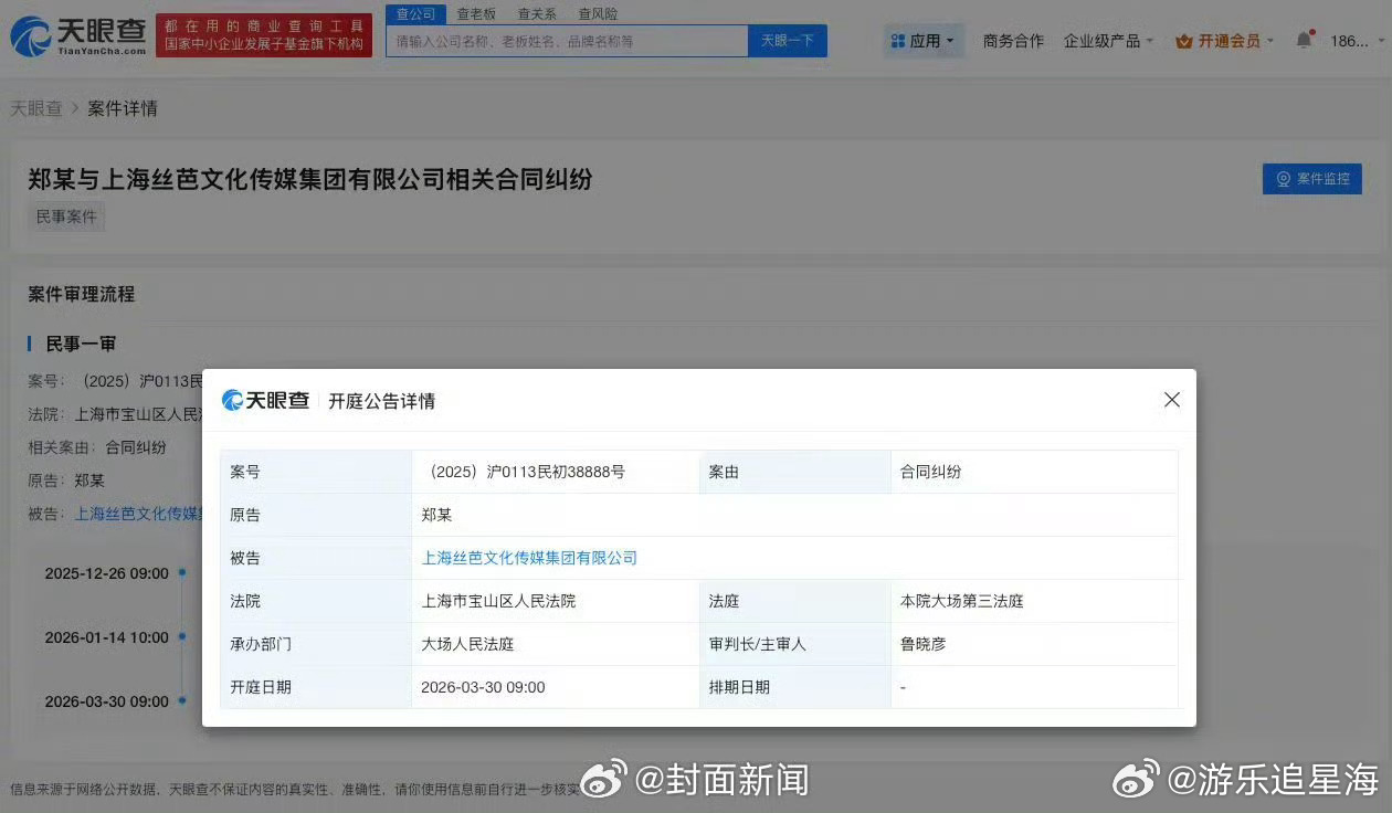 郑丹妮起诉丝芭3月开庭 想起郑丹妮去年宣布退团,称长期高强度工作让身体透支,还因拒绝不合理要求被威胁扣工资。如今对簿公堂,希望法律能给出一个公正的结果,还她一个公道。